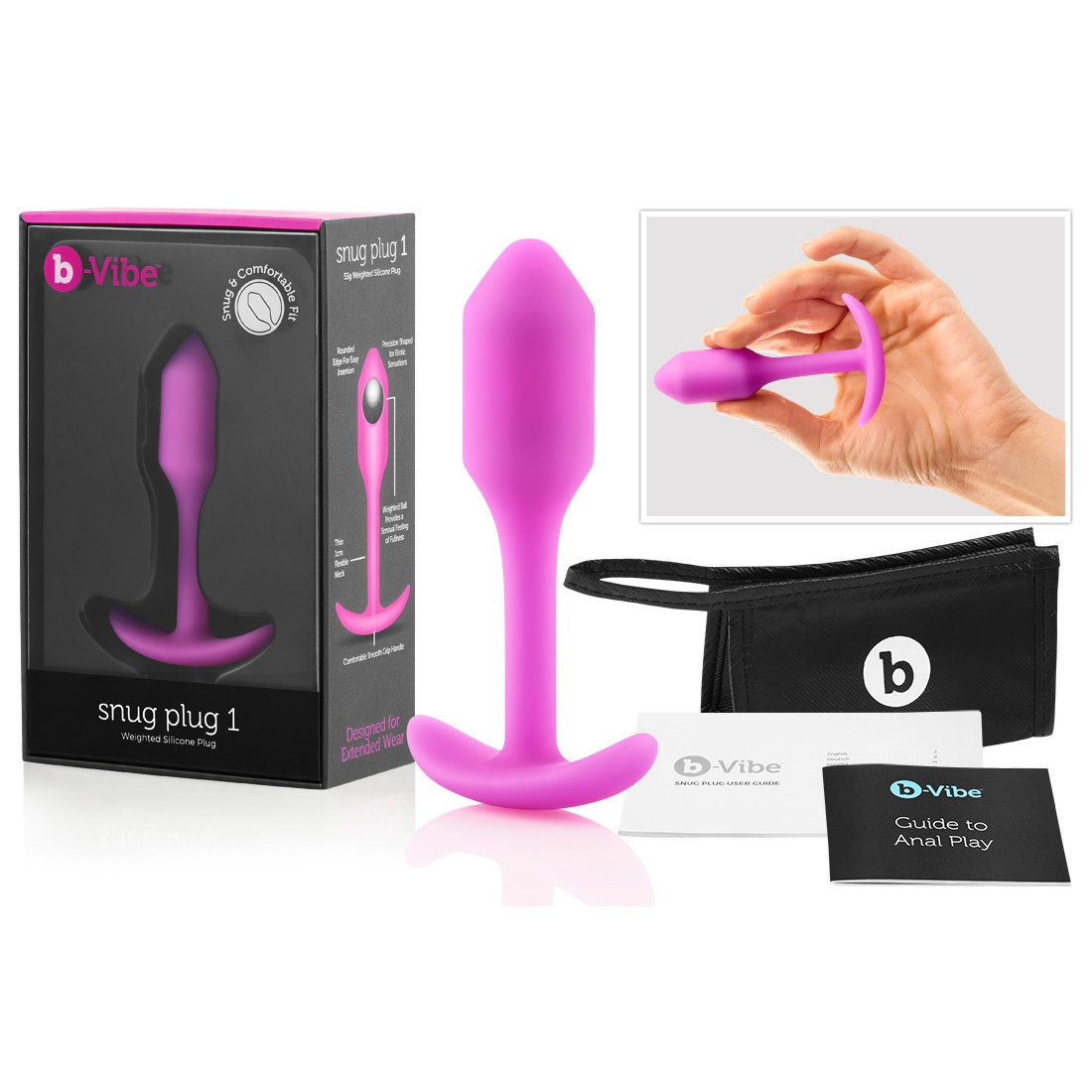 Snug Plug er en fantastisk nyudvikling fra B-Vibe og er designet til at pirre din popo på yderst tilfredsstillende vis. Anal pluggens hoved gemmer på indbyggede kuglevægte, hvis tyngde giver dig en vidunderlig fornemmelse af at blive helt udfyldt. Ved hver bevægelse vil du mærke vægtenes pirrende, trykkende effekt, som tilføjer en spændende ny dimension til dine frække solostunder, men også til erotiske lege med din partner. Takket være dens lange, fleksible og meget smalle skaft, der kun måler 1 cm i diameter, er denne buttplug utrolig behagelig at bære selv i længere tid, hvilket gør den velegnet til brug både ude og hjemme. Grebet er smalt nok til ikke at forstyrre din leg – det forsvinder bare mellem dine baller.