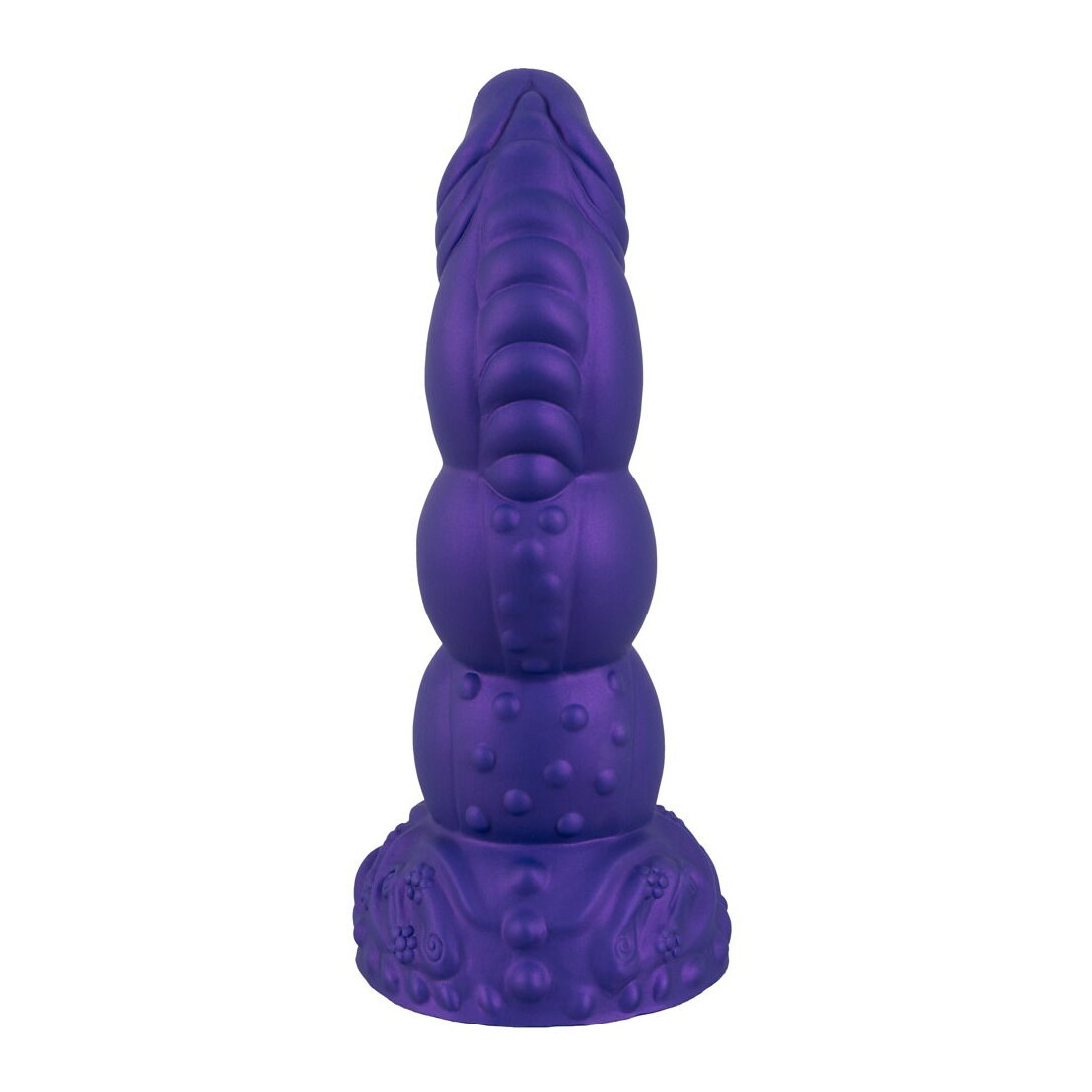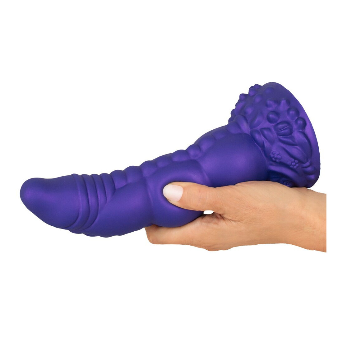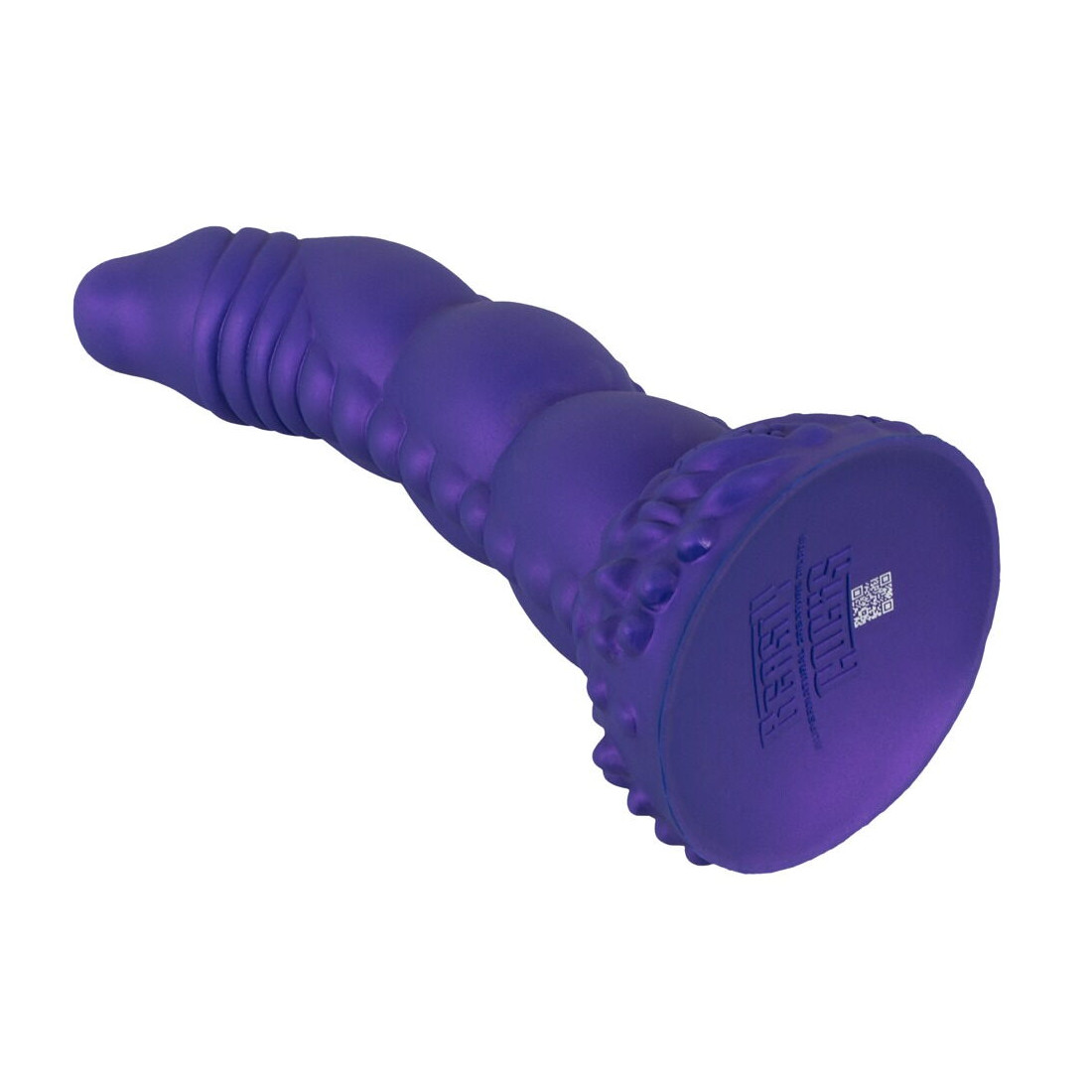 Den store, lilla sag er nemlig spækket med strukturer, der ikke alene ser flotte ud, men som også giver dig den frækkeste massage, når først du fører den op i enten vagina eller anus. Detaljer som knopper, riller, kugler og indhak gør den enormt kompleks og fræk. Den virkelig bløde silikone gør, at du kan lege med den helt uden at bruge smøremidler. Skulle du alligevel få lyst til at nyde denne dæmon med glidecreme, kan det hele virkelig blive vådt og smidigt!