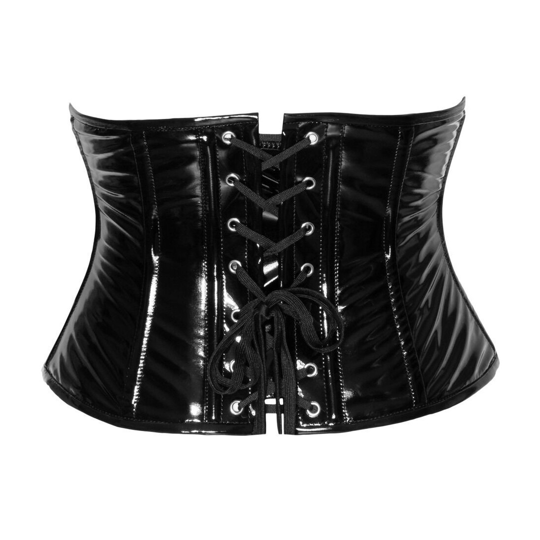 Få timeglasfigur med corsage i lak. Du lukker corsagen foran med en praktisk lynlås, der gør det nemt at få corsagen på, før du snører det til. Bagefter kan du også linde på snørerne og let lukke dig ud af corsagen, hvis du skal bruge mere bevægelighed eller have lidt luft.