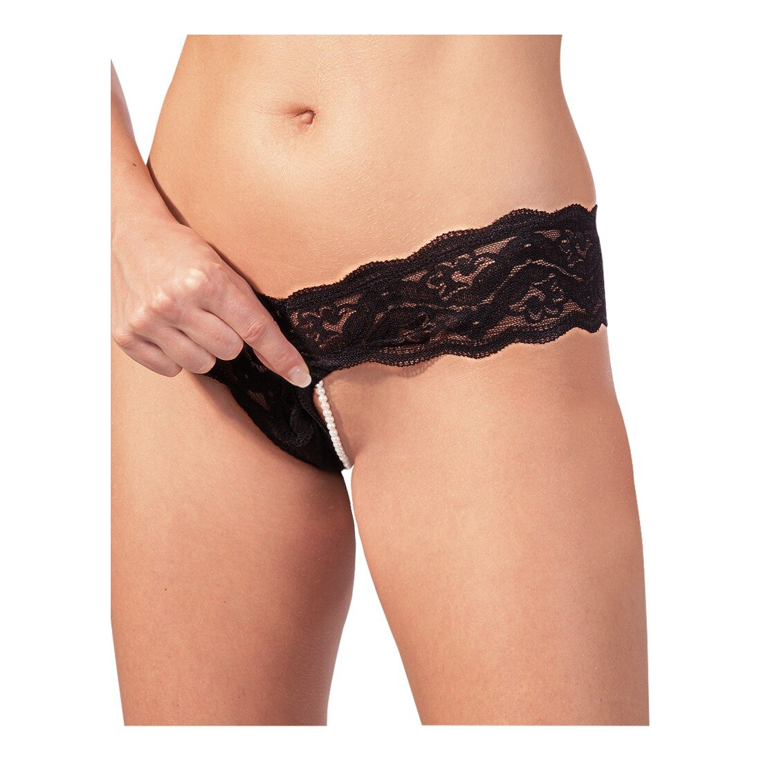 Denne smukke Blonde G-streng med Perle Kæde fra Cottelli er designet til kvinder, der elsker leg med forførelse og sensuelle detaljer. De blomstrede blonder omfavner hofterne og giver et elegant og feminint udtryk, mens den brede talje både føles behagelig og fremhæver dine kurver på den mest flatterende måde.