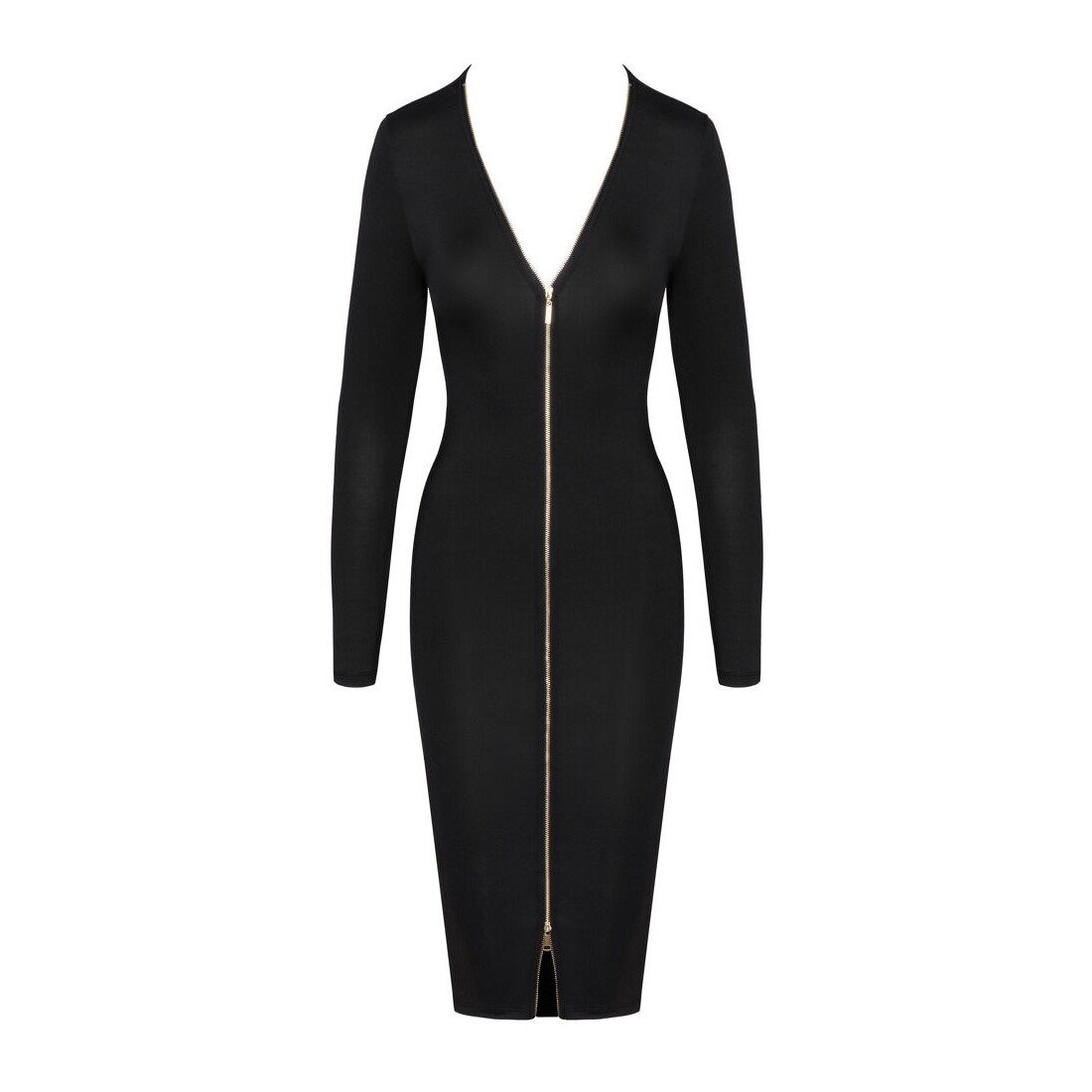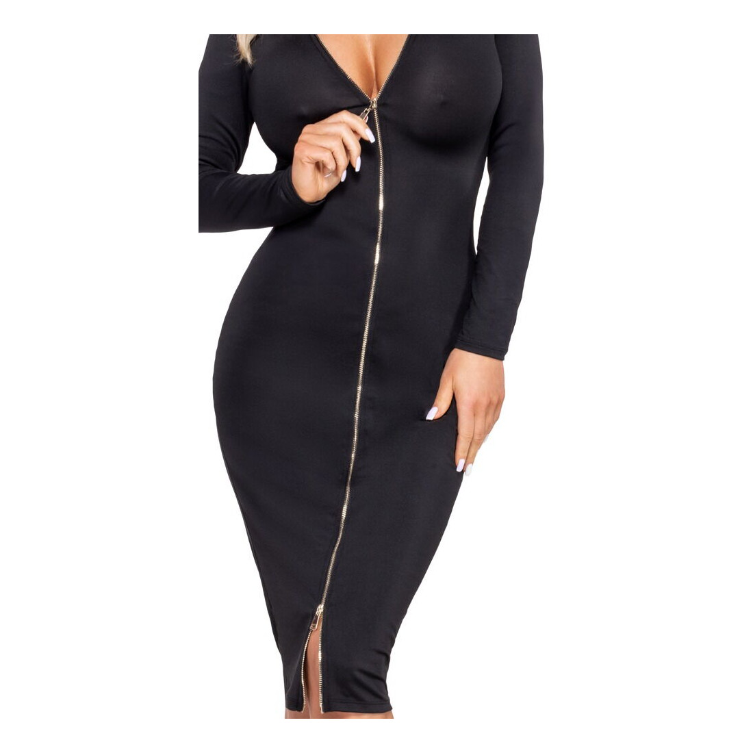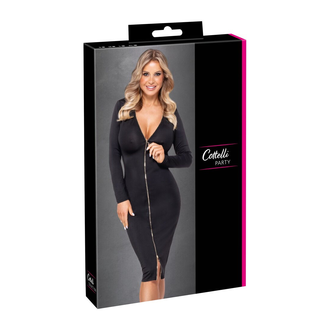 Er elegance og forførelse nøgleordene for din aften, skal du se nærmere på denne sorte langærmede kjole med 2-vejs lynlås fra Cottelli, som kombinerer netop de egenskaber. Med den tætsiddende pasform fremhæver den smukt dine velskabte kurver, mens længden giver et stilfuldt og sofistikeret udtryk. Uanset om du bruger den til middag, fest eller en flirtende aften i byen, vil du helt sikkert tiltrække blikke i dette design.
