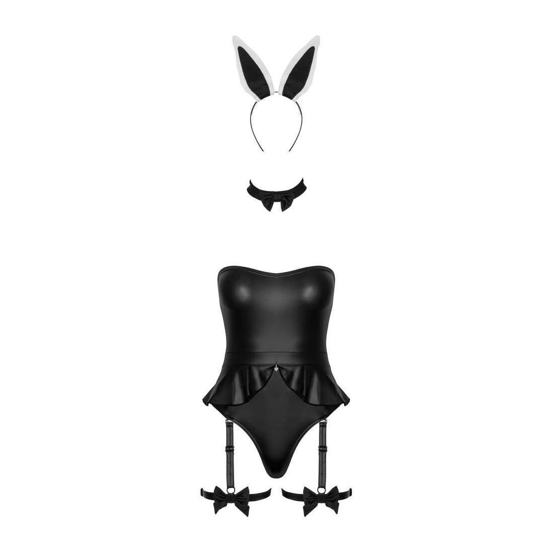 Lad dig forføre af dette uimodståelige Cottelli Matlook Bunny Body Kostume – et frækt tredelt sæt, der lader dig glide ind i rollen som den sorte mest sofistikerede kanin med et strejf af ren sexappeal. Det skulderfri kostume omfavner kroppen i et glat, mat stof, der både føles luksuriøst mod huden og fremhæver dine flotte kurver. De høje udskæringer forlænger benene og giver et frækt glimt af hofterne, mens det lille skørt i taljen tilføjer en feminin elegance, der gør, at du bevæger dig på grænsen mellem uskyld og iøjnefaldende fristelse.