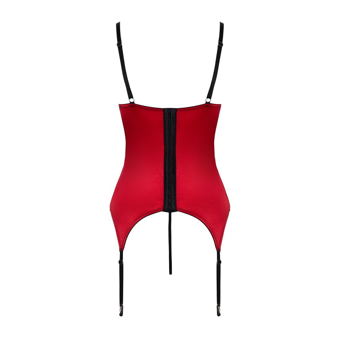 Her er det perfekte hofteholdersæt til dig, der vil se både fræk og smuk ud på én og samme tid! Sættet er lavet i en flot, rød farve med sorte blondedetaljer ved både bryst, mave og hofte. Strømpeholderne og stropperne ved skuldrene matcher i sort. Det sorte og røde look giver en intens kontrast, som gør dig både spændende og iøjnefaldende.