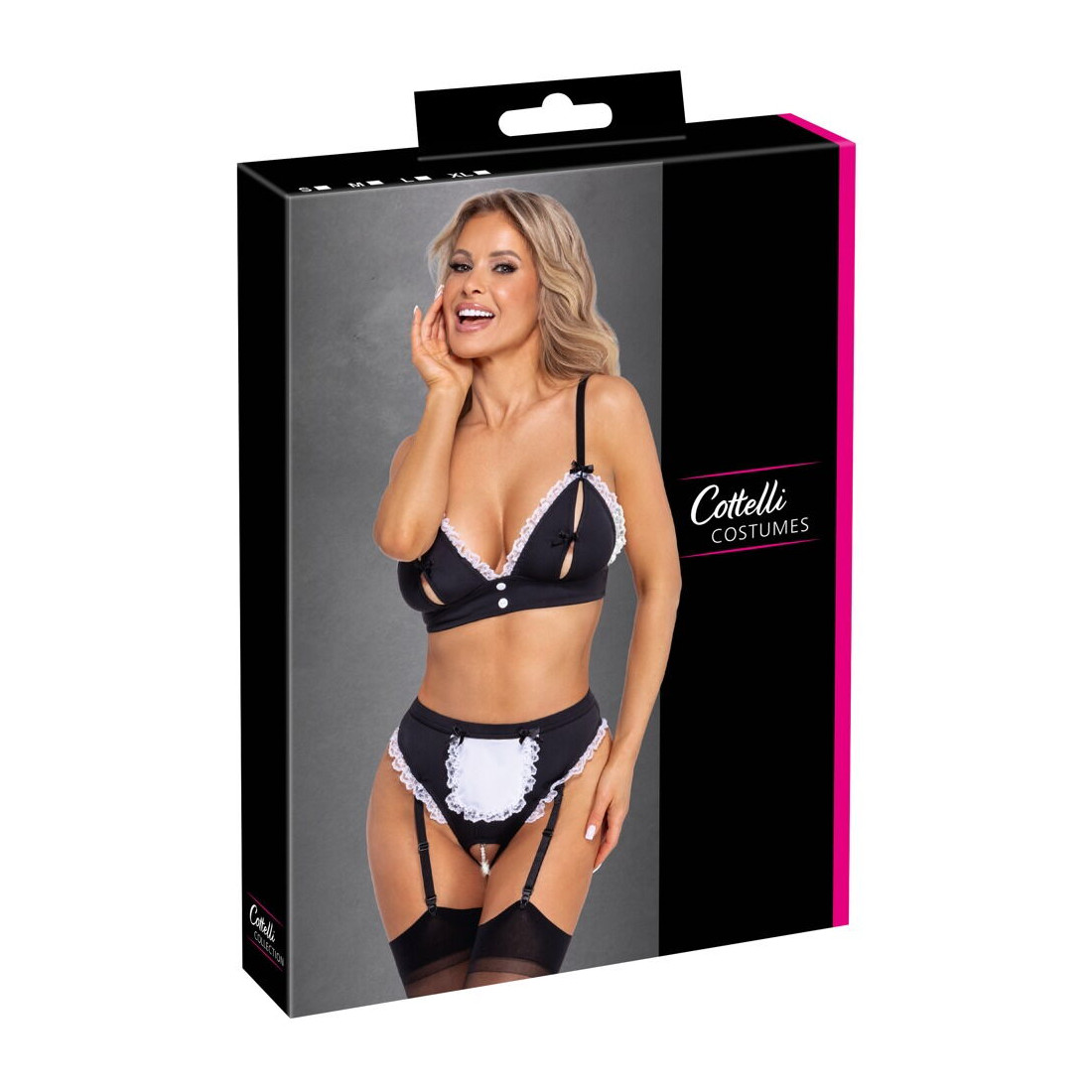 Når du træder ind i rollen som den forførende stuepige, forsvinder enhver tanke om uskyld. Dette todelte Stuepige Kostume Lingeri Sæt fra Cottelli er skabt til leg, fristelse og lyst – og når først du har banket på til hotelværelset, er der ingen vej tilbage.