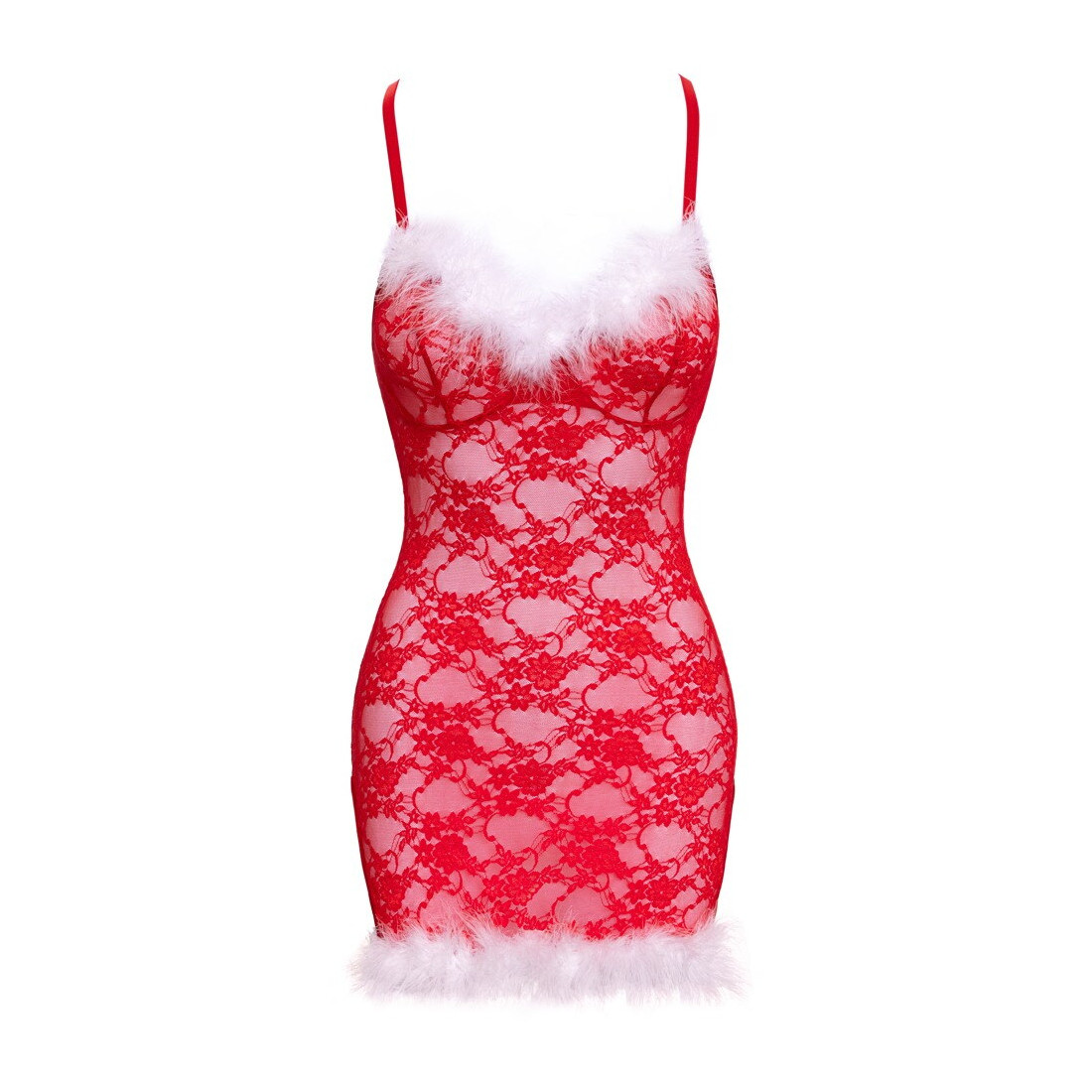 Blondernes fine struktur giver et lille udsyn til din bare hud og balancerer det søde og erotiske til perfektion. Det er kombinationen af det uskyldige juletouch og den frække forførelse, som gør negligeet oplagt, når du vil give din partner den ultimative julegave; dig og alt det, som du har at byde på.