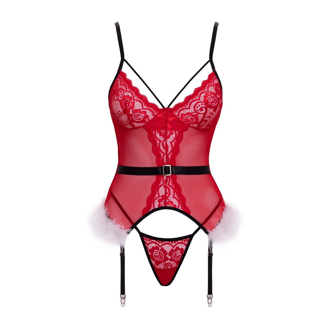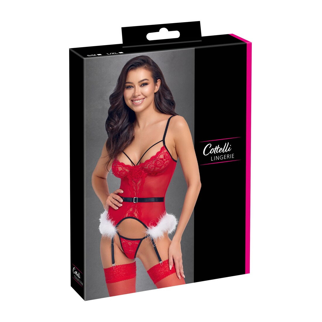 Festligt, frækt og fuld af overraskelser – dette X-Mas Hofteholder Sæt fra Cottelli er skabt til at tilføje glød til enhver aften, hvor lyst og leg står på programmet. Kombinationen af røde netstrømper og røde blonder skaber et sensuelt look, mens sorte detaljer giver et sofistikeret modspil. De hvide fjer langs hofterne tilføjer et pirrende og drilsk element, der fanger blikket og gør sættet indbydende og helt uimodståeligt.