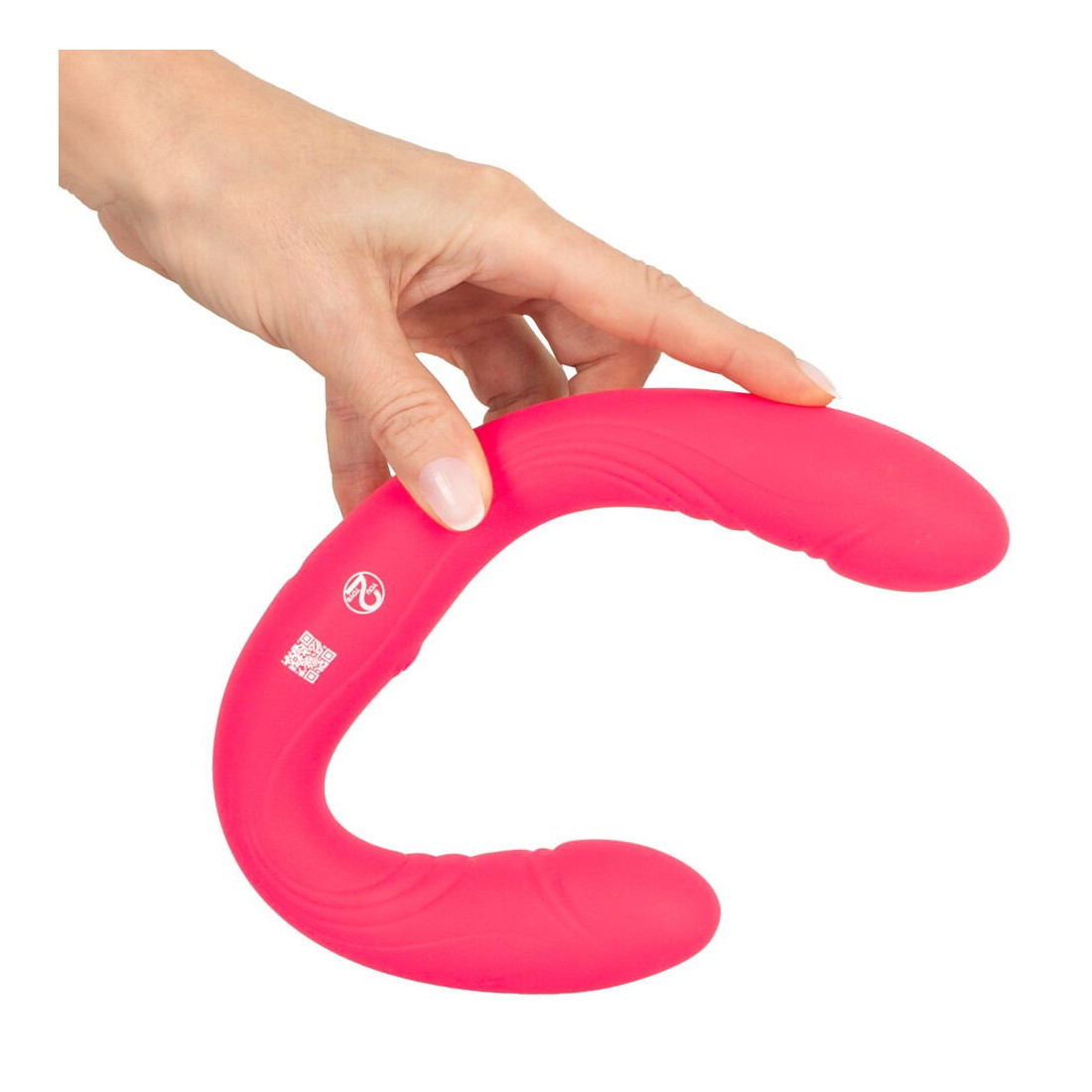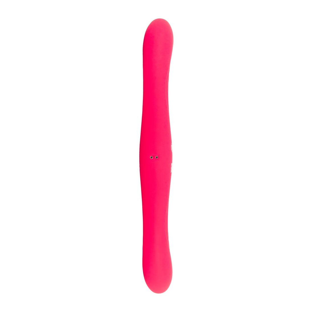 Den silkebløde overflade føles uimodståelig mod huden, og de to ender er formet med sanselige detaljer som det let markeret hoved, de blide riller og bølgende strukturer, der stimulerer på hver sin måde. Begge ender vibrerer intenst i spidserne og kan bruges vaginalt eller analt, så I kan eksperimentere frit. Med et enkelt tryk på knappen midt på legetøjet skifter I mellem ni forskellige vibrationsmønstre fra dybe pulseringer til hurtige, sitrende rytmer.