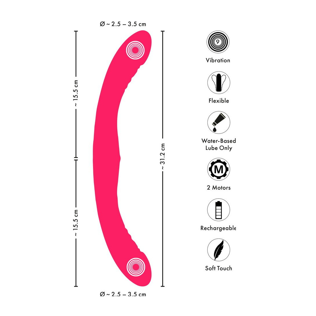 Lad jeres fælles lyst og bevægelser smelte sammen med denne Double Opladelige Silikone Vibrator fra Couples Choice, som er skabt til at forbinde jer og gøre jeres intimitet endnu mere intim. Det fleksible dobbeltdesign og to kraftfulde motorer giver jer mulighed for at nyde dyb, rytmisk stimulering, mens I bevæger jer i takt med den mere end 30 centimeters lokkende silikonevibrator.
