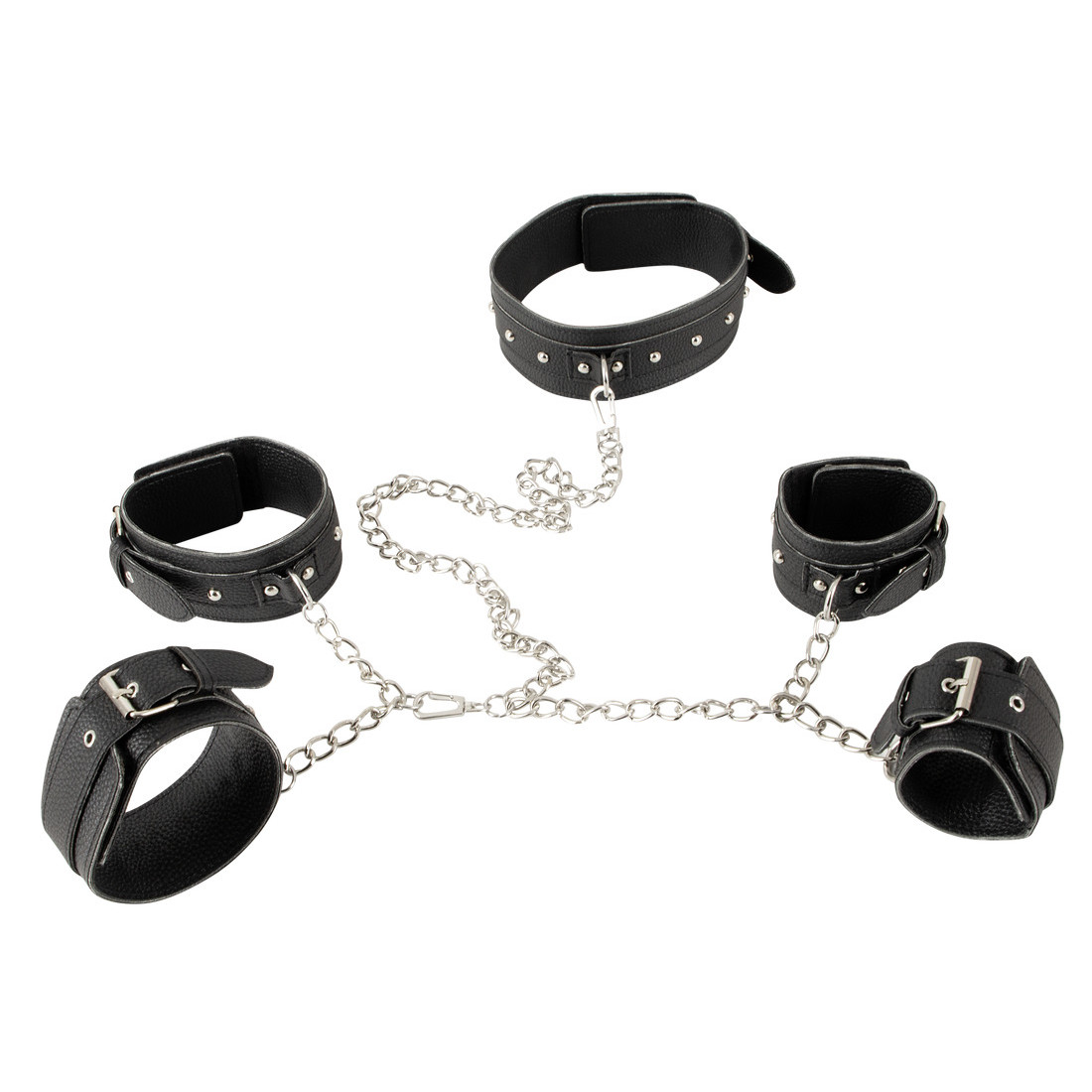 Nu kan du lænke din partner sikkert fast fra hals til tå! Dette sæt består af alle de lænker, du skal bruge for at få den komplette kontrol over din partner.
