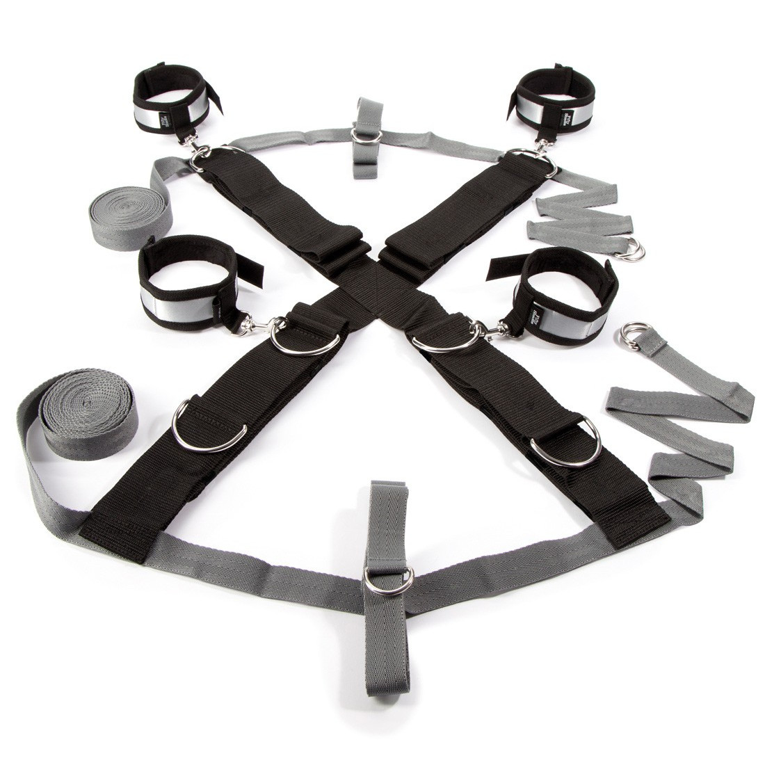 Selve sættet er formet som et X, hvor der er muligheder i hver ende. Der er lænker til, at både håndled og ankler kan spændes fast. Derudover er der flere andre ringe, som kan bruges på forskellige måder. Desuden er der også flere ringe af metal, så du selv kan sammensætte sættet, som du har lyst.
