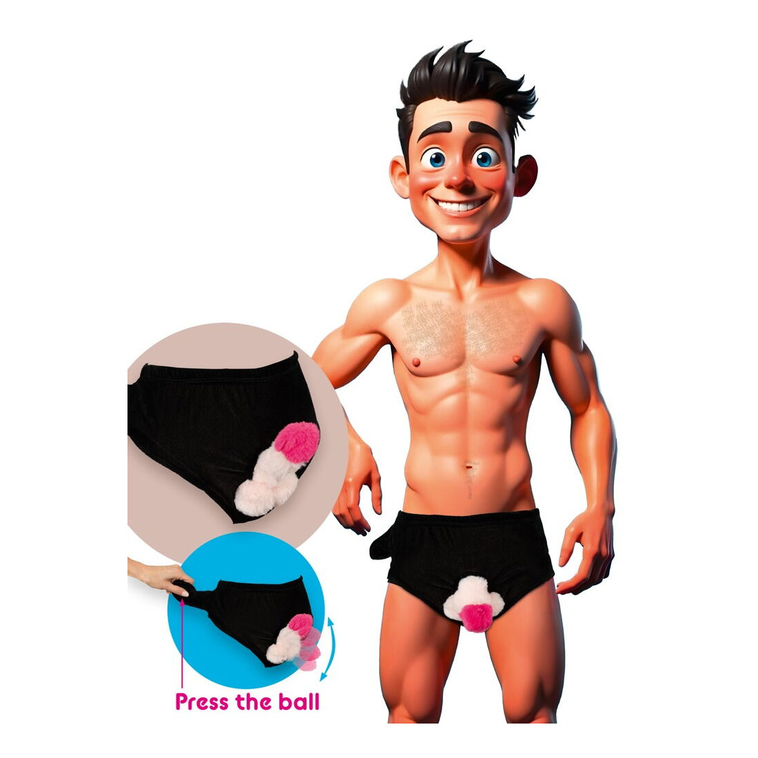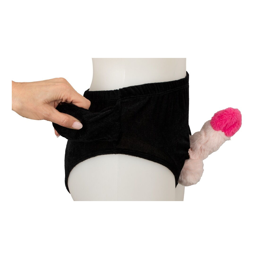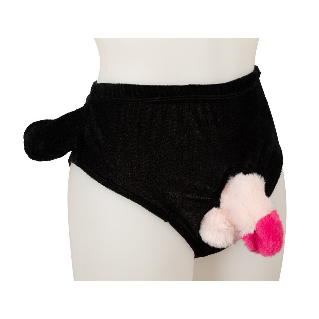 Er du klar til at overraske og tilføje et frækt tvist til enhver festlig lejlighed? Disse gagtrusser med den bløde og bevægelige plyspenis foran stjæler straks opmærksomheden, men det er først, når du finder den hemmelige ’pumpball’, at magien virkelig sker – giv den et let tryk, hvis du vil se penissen stritte stolt op, klar til at få alle omkring dig til at grine og pege. Det er både en overraskelse for dig selv og alle andre – en legesyg, pirrende effekt, der tænder humøret med det samme.