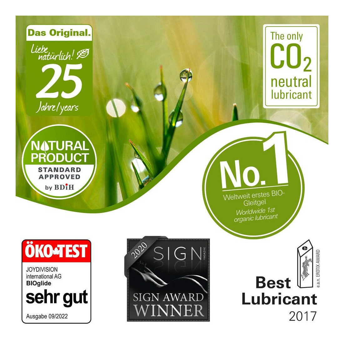Joydivision BIOglide er en lækker vandbaseret glidecreme, som er klar og tyndtflydende. Den lette, silkeagtige konsistens plejer og fugter optimalt uden at virke klistret. BIOglide er også en økologisk glidecreme. Der er høje krav til økologisk produktion, og disse krav gælder selvfølgelig også de producenter, der vælger at tilbyde glidecreme til samleje på økologisk basis.