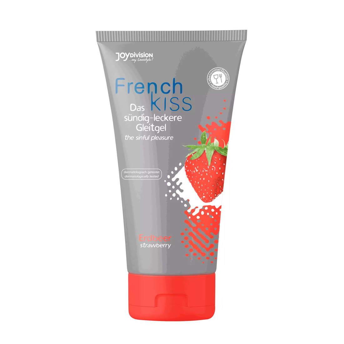 Frenchkiss er en glidecreme til samleje med smag af sødmefyldte jordbær, som er et naturligt afrodisiakum. Joydivision har udviklet den specielt til dig, der elsker at kærtegne hver en krog af din partners krop med din mund. Takket være duftstoffernes lighed med det rigtige jordbær vil denne glidecreme gøre oralsex meget mere ophidsende for jer begge. Den, som bruger munden, får en uovertruffen sanseoplevelse oveni fornøjelsen ved at tilfredsstille sin partner. Den, der modtager den orale forkælelse, mærker med det samme, hvordan vidunderlig vandbaseret glidecreme med smag kan gøre dybe kys endnu dybere. Vær ikke bange for at bruge kondom sammen med Joydivision Frenchkiss. Kondomet tåler sagtens den velduftende smørelse.