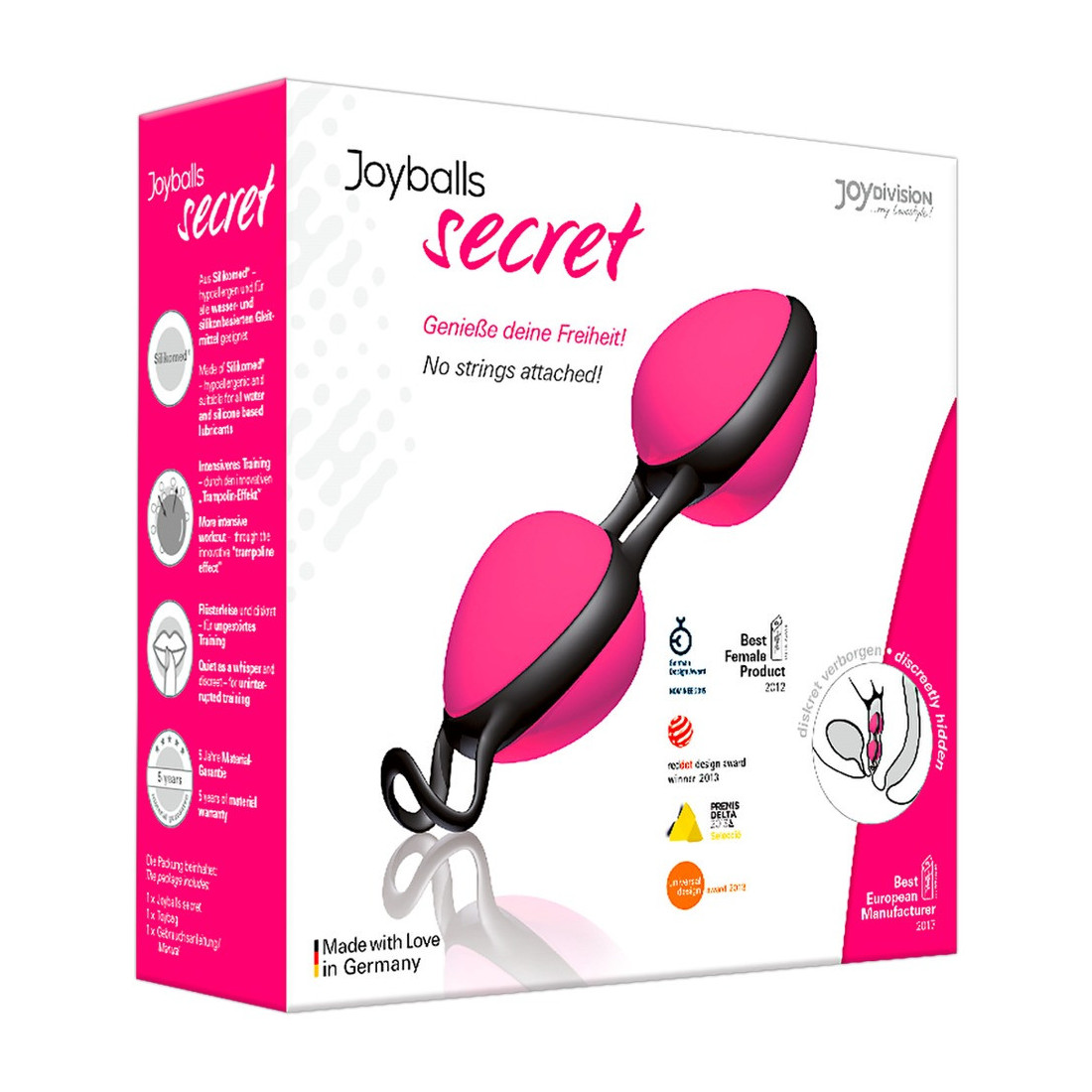 Joyballs Secret er et sæt fantastiske bækkenbundskugler fra Joydivision. Kuglerne har samme størrelse og den samme elliptiske form; de sidder dog modsat af hinanden på silikonesnoren. Kuglerne har også et lille udtrækningshåndtag, når kuglerne skal ud igen. Du kan bruge bækkenbundskugler, mens du ordner trivielle opgaver som rengøring eller indkøb, for bækkenbundsmusklerne trækker sig automatisk sammen om kuglerne. De kedelige opgaver bliver pludselig lidt mere inspirerende, når du ved, at dine muskler arbejder imens. Desuden har Joyballs Secret bækkenbundskuglerne hver især en lille kugle indeni, som roterer ved hver eneste af dine bevægelser. Det giver på én gang ekstra effektiv træning og en dejlig fornemmelse.