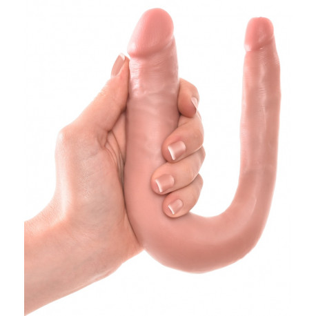 Medium Double Trouble fra King Cock er en særlig dildo, der kan stimulere dig vaginalt og analt på samme tid. Dildoen er 35 cm lang og består af to modsatrettede dildoer med hver deres penishoved, og den ene ende af dildoen er en smule smallere end den anden. Brug eventuelt den smalle ende i anus og den tykke ende i vagina.