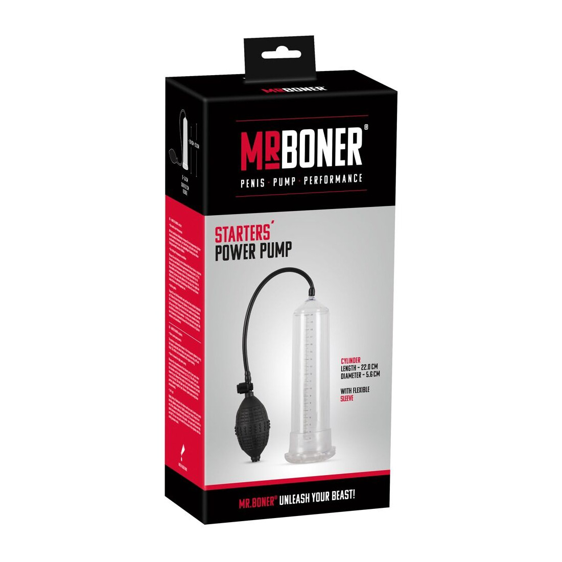 Vil du gerne styrke din erektion og samtidig nyde fornemmelsen af en dyb og stimulerende massage? Mister Boner Starters Power Pump er et enkelt og effektivt redskab til dig, der vil udforske vakuumteknikkens fordele. Pumpen består af en gennemsigtig cylinder med indbygget måleskala, så du hele tiden kan følge udviklingen og se dine resultater, efterhånden som du vokser.