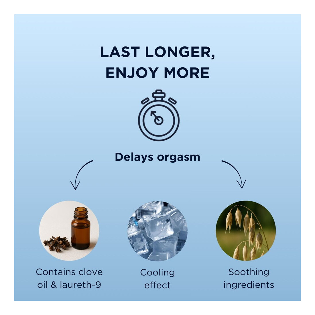 Formlen kombinerer naturlige ingredienser med en effektiv teknologi, som kan hjælpe dig med at udskyde klimaks, mens du stadig bevarer fornemmelsen af varme, kontakt og intensitet. Samtidig sørger et diskret kølende touch for en frisk følelse og giver dig en rolig og kontrolleret rytme, hvor du kan trække oplevelsen ud og støde lidt mere i bund.
