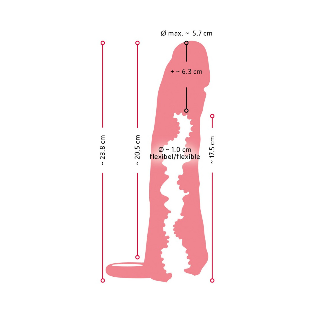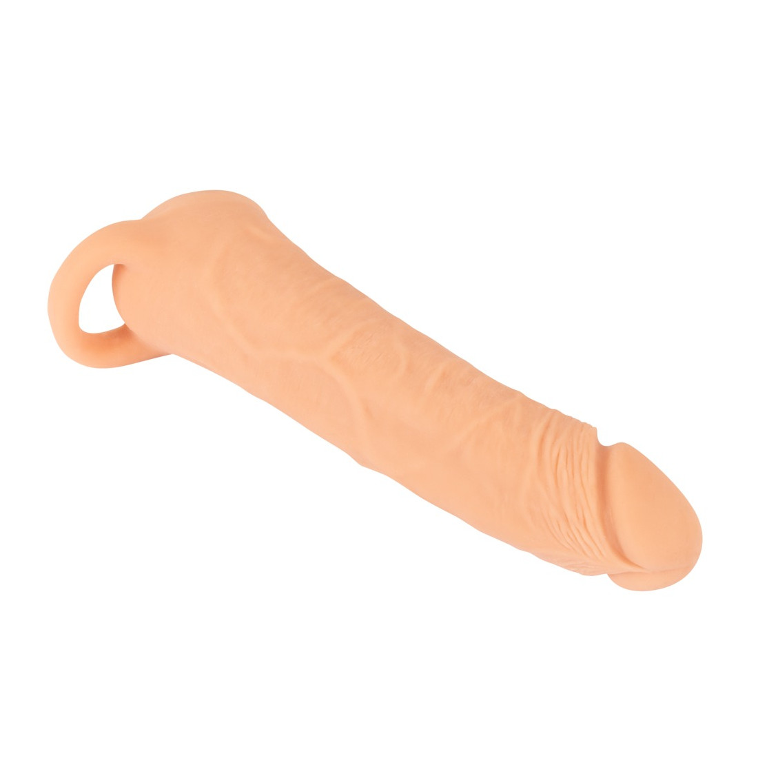 Du behøver ikke længere at drømme om en stor, tyk penis, når du tager dette sleeve på. Din penis bliver nemlig straks både længere og tykkere, så du kan fylde din partner helt ud under sex. Detaljer som et tydeligt markeret penishoved og årer giver et utroligt naturtro look, som med sikkerhed får din date til at spærre øjnene op! I bunden af sleevet sidder en testikelring, som både sikrer, at sleevet bliver siddende, men som også strammer lækkert om dine testikler imens.