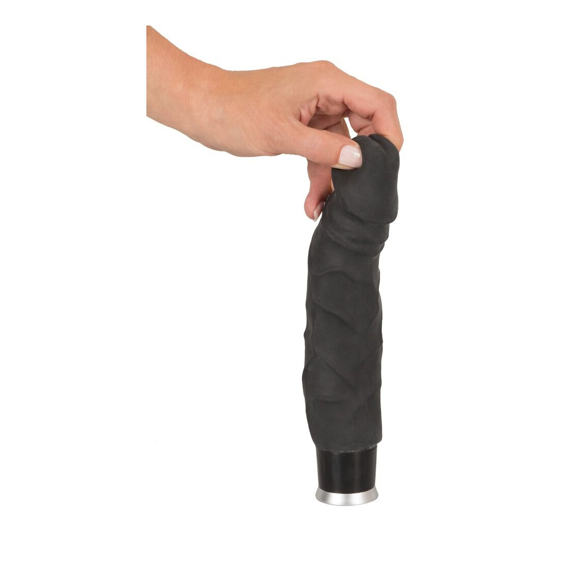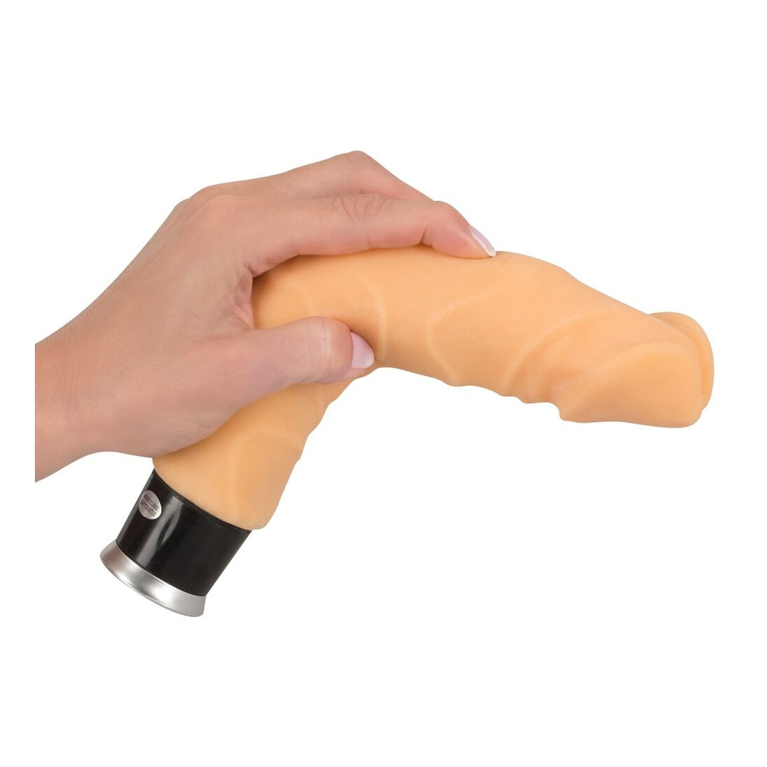 Men som sagt overgår denne dildo også den ægte vare, idet den er udstyret med en kraftig vibrator, der gør legen ekstra nydelsesfuld. Så snart du har ført dildoen op i dig, kan du frit vælge mellem 8 skønne vibrationsintensiteter, der reguleres fra bunden.