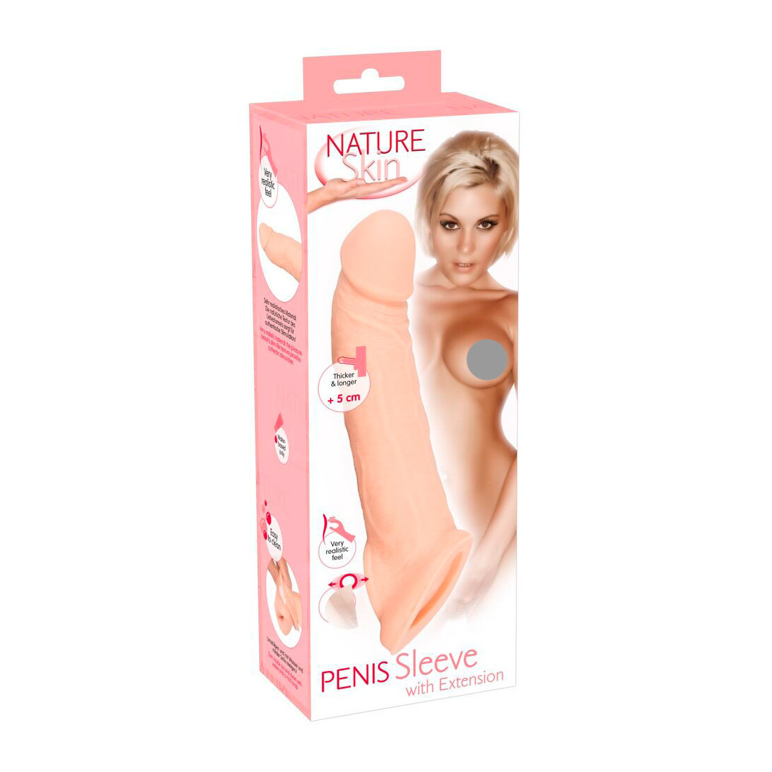 Tanken bag et penis sleeve er ikke, at der er noget galt med dit naturlige udstyr. Slet ikke. Tværtimod er formålet med Nature Skins penis sleeve at understrege alle dine maskuline kvaliteter og måden, du bruger dem på. En penisforlænger er som en dobbelt espresso til din manddom, der med det samme retter ryggen og går benhårdt efter målet. Det hudfarvede penis sleeve giver dig hele 5 centimeter ekstra at arbejde med, og din partner vil med garanti sætte stor pris på hver eneste af dem, når du støder.