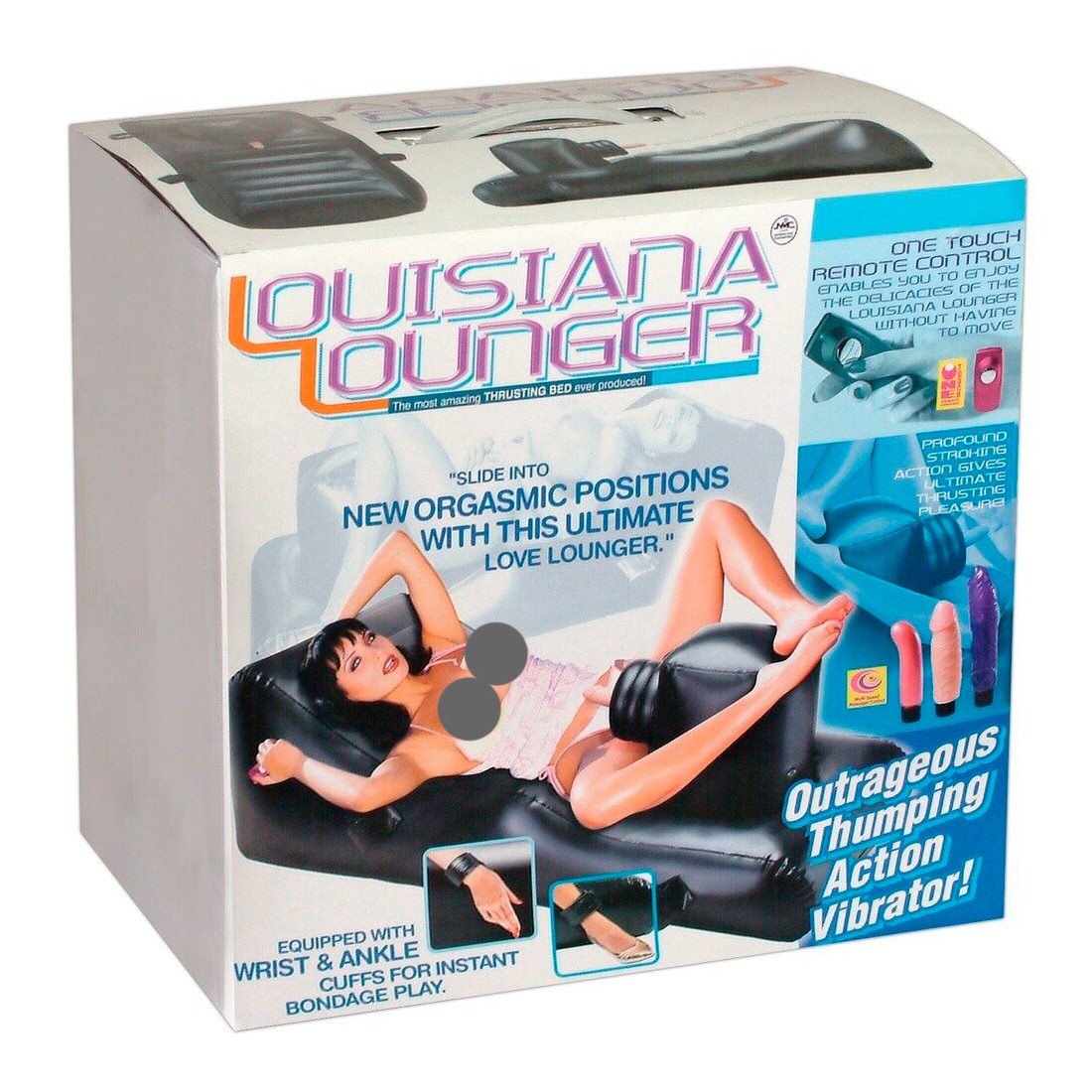 Denne sexmaskine er til dig, der ikke har nok i en vibrator eller andet sexlegetøj, og som vil have en ultimativt fuldendt oplevelse. Sexmaskinen har en 25 cm tyk, oppustelig madras, som giver dig god støtte, og samtidig medfølger der hele tre forskellige monterbare dildoer, der alle har trinløs vibration og desuden også kan bruges separat uden maskinen. Den ene dildo er en lang jelly dildo, den anden en realistisk designet dildo, og til sidst får du en lækker g-punkts dildo. Så er det blot at vælge alt efter dit humør og montere den vibrator, du ønsker. Maskinen har derudover en potent stødefunktion, der byder på op til 200 frække stød pr. minut. Reguleres let ved hjælp af den tilhørende trådløse fjernbetjening.
