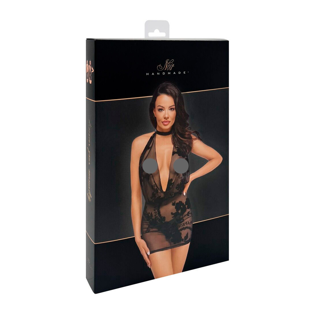 Den her kjole har alt det, du skal bruge til den perfekte forførelsesseance. Den klæder din krop i sensuel sort og giver dig et supersexet look. Selvom det finmaskede sorte mesh dekoreret med bløde velourblomster gør det muligt for beskueren at skimte din krop, sørger mini kjolens design for en sofistikeret fremtoning. Halterneck-lukningen efterlader ryggen ganske bar, og eneste forbindelse til underdelen bagpå er en række af funklende sten. Der er absolut ingen fare for, at du føler dig som noget andet end jordens mest sexede væsen. Nyd det, og få det til at vare så længe, du kan. Hvis du vil opretholde illusionen en smule længere, kan du kombinere den gennemsigtige kjole med et sæt frækt undertøj til kvinder.