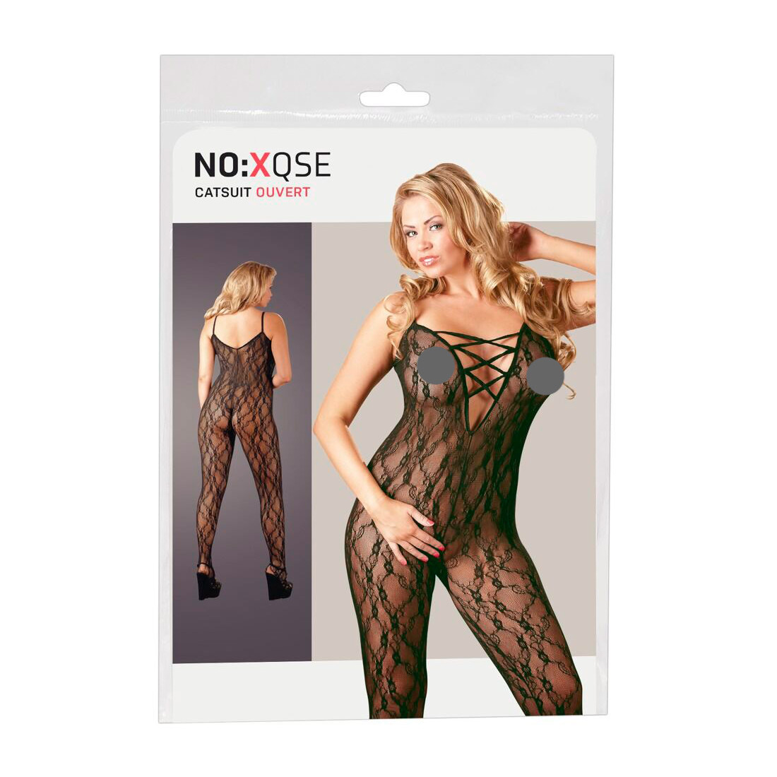 NO:XQSE Sexy Catsuit Bundløs kan desuden sagtens bæres under en kjole eller et jakkesæt. De smukke snørredetaljer, der pryder kavalergangen, og de chikke blonder giver på den måde en lille smagsprøve på goderne, der gemmer sig under det yderste lag.