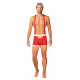 Det frække julekostume til mænd fås i flere størrelser, så både små og store julemænd kan være med. De røde boxershorts har hvide kanter, sexet snøre foran og et frækt, trekantet hul bagpå, der afslører det øverste af numsen. Stoffet er lækkert skinnende syntet. Tænd et julelys, sæt huen på skrå, og skynd dig gennem skorstenen og ned til nissemor, som venter på at pakke sin julegave ud.