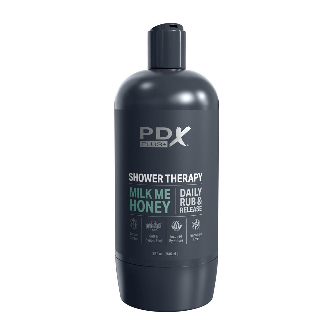 Shower Therapy Milk Me Honey er glat som sæbe, men det er ikke, fordi den er fyldt med shampoo. Den bløde fornemmelse skyldes Fanta Flesh, et signaturmateriale fra PDX, der åbenbarer sig for dig under ’flaskens’ aftagelige bund. Det er skabt for at give dig følelsen af en realistisk vagina, både udvendigt og indvendigt. Den overbevisende yderside bliver kun bedre, når du trænger ind i den stramme tunnel fyldt med pirrende tekstur.