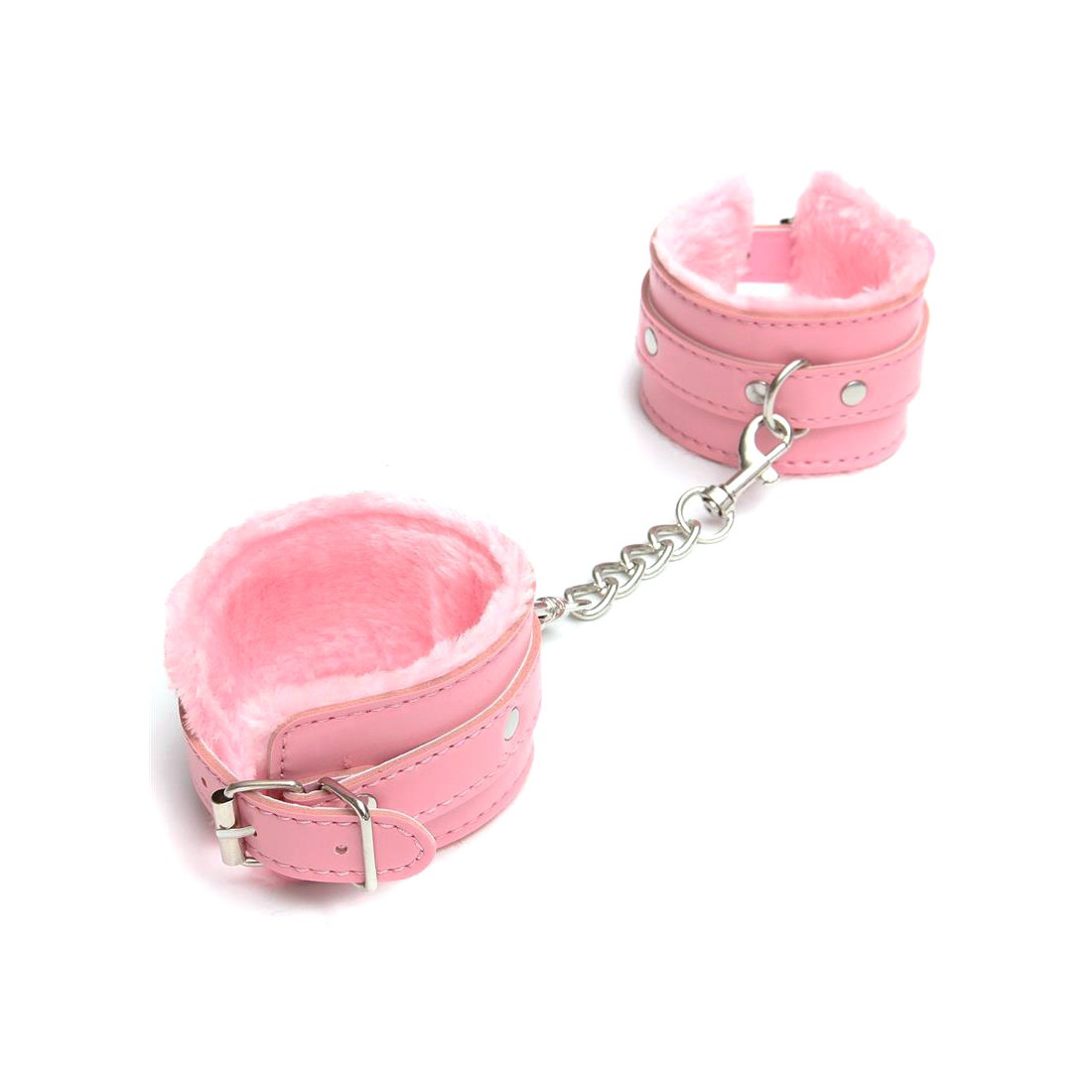 Det er to anderledes håndjern, der er dejligt behagelige at spænde om håndleddene. På grund af kæden kan de også spændes bag ryggen og rundt om en stolpe. Hvis du har to styks håndjern, kan du spænde en om det ene håndled og en sengestolpe, og det samme vil du kunne med det andet håndled.