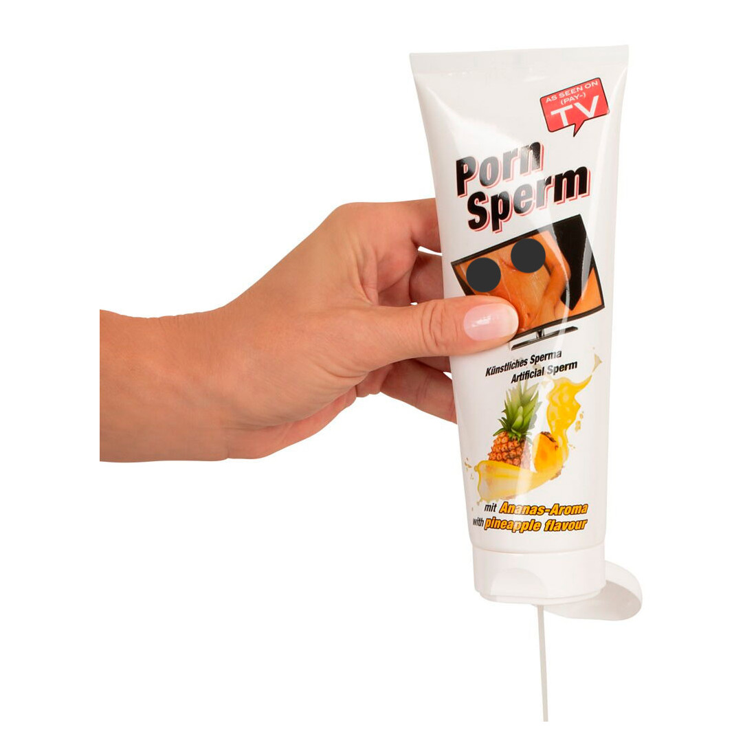 Du har nok lagt mærke til, at navnet er Porn Sperm. Det er det, fordi dette ultrasexede og realistiske produkt både fungerer som en vandbaseret glidecreme, men også kan bruges som kunstig sperm. Det er perfekt til fx dominanslege kombineret med bukkake, hvor manden tilsøler kvinden i sæd. Eller hvad med at tage en helkropsmassage til et hidtil uset ophidsende niveau ved at smøre hinanden ind i den ananasduftende kunstsæd.