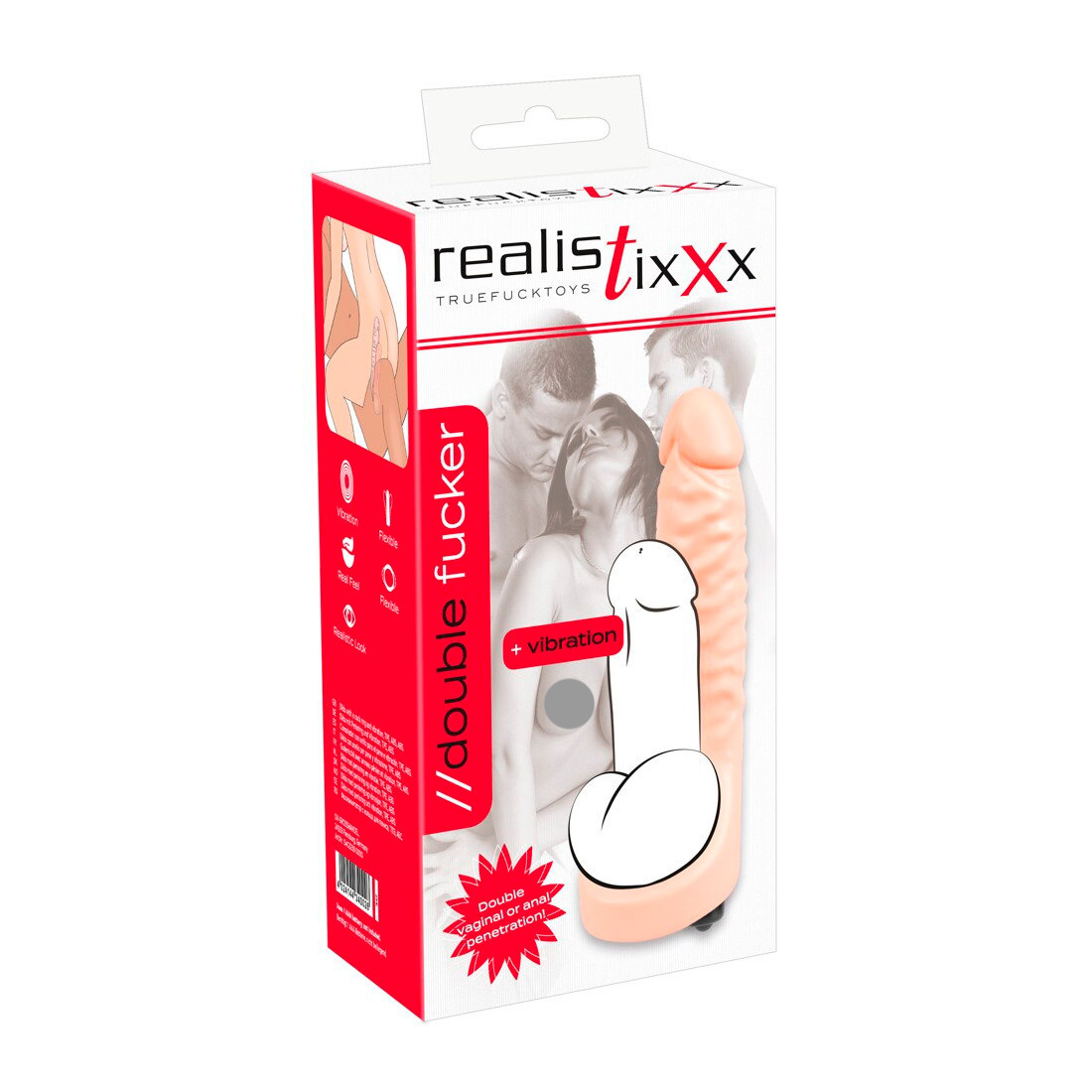 Har du en fræk fantasi, hvor du bliver dobbeltpenetreret af både din partner og en anden penis? Måske sådan en fantasi, hvor du ikke nødvendigvis vil have en ekstra med i soveværelset? Så har vi en helt særlig vibrator, du skal møde. Denne Double Fucker fra Realistixxx kan nemlig sættes fast på din partners penis, så du får fornøjelsen af at blive fyldt ud i både vagina og anus på én gang.
