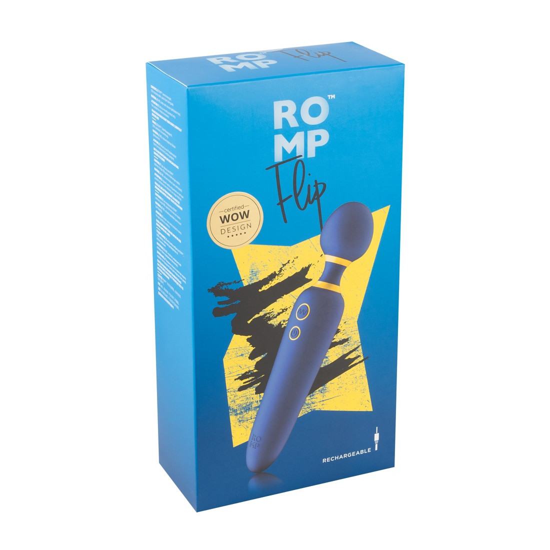 ROMP massagestaven vil så gerne bidrage med intim stimulering til ømme, begærlige kroppe. Derfor giver den som et ekstra magisk touch mulighed for at forkæle med begge ender. Det store, runde og silkebløde massagehoved kan bruges til afspænding af trætte muskler under en dejlig omgang intim massage. Samtidig er den opladelige magic wand utrolig velegnet til pirring af erogene zoner som nakke, øreflipper, mave, skamlæber og brystvorter. Den er naturligvis også en sand ekspert inden for klitoris stimulation med sine 6 vibrationshastigheder og 4 rytmer og kan hurtigt trylle orgasmen frem. Han kan hurtigt overtales til at prøve massagestaven, når du fortæller ham, at ROMP Flip også ganske effektivt kan pirre testikler og penishoved. Tænd et par duftlys, find en god lotion, og hiv ROMP Flip magic wand frem. Sådan en aften kan kun ende arm i arm under dynen.