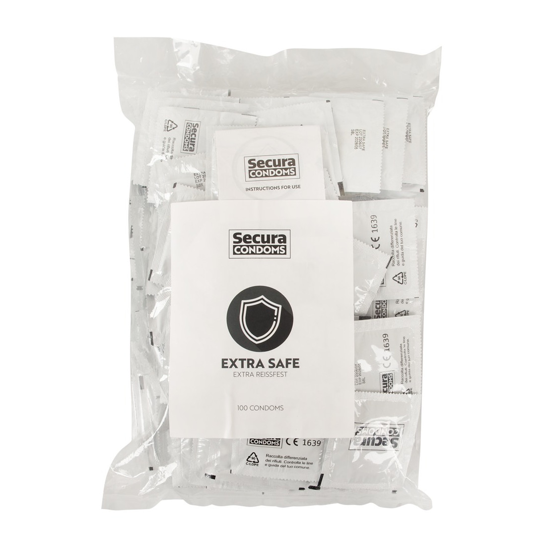 Secura Extra Safe Extra Tykke Kondomer er et fantastisk produkt til dig, der vil forkæle både dig og din partner. Tykkelsen på kondomerne reducerer nemlig følelsen fra friktionen på penis, så du kan forsinke din orgasme og nyde legen i længere tid. På den måde slipper I for at holde pauser midt i akten for at forlænge hyggestunden. Med andre ord kan du med disse kondomer holde i længere tid. Kondomerne er rivefaste, hvilket giver en ekstra sikker følelse, så I begge kan slappe af og nyde det hele – også når I dyrker analsex.