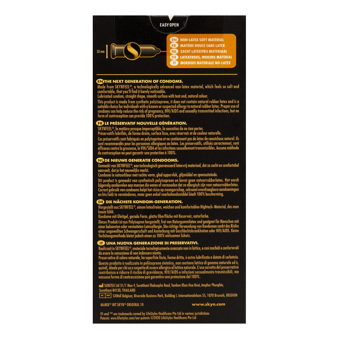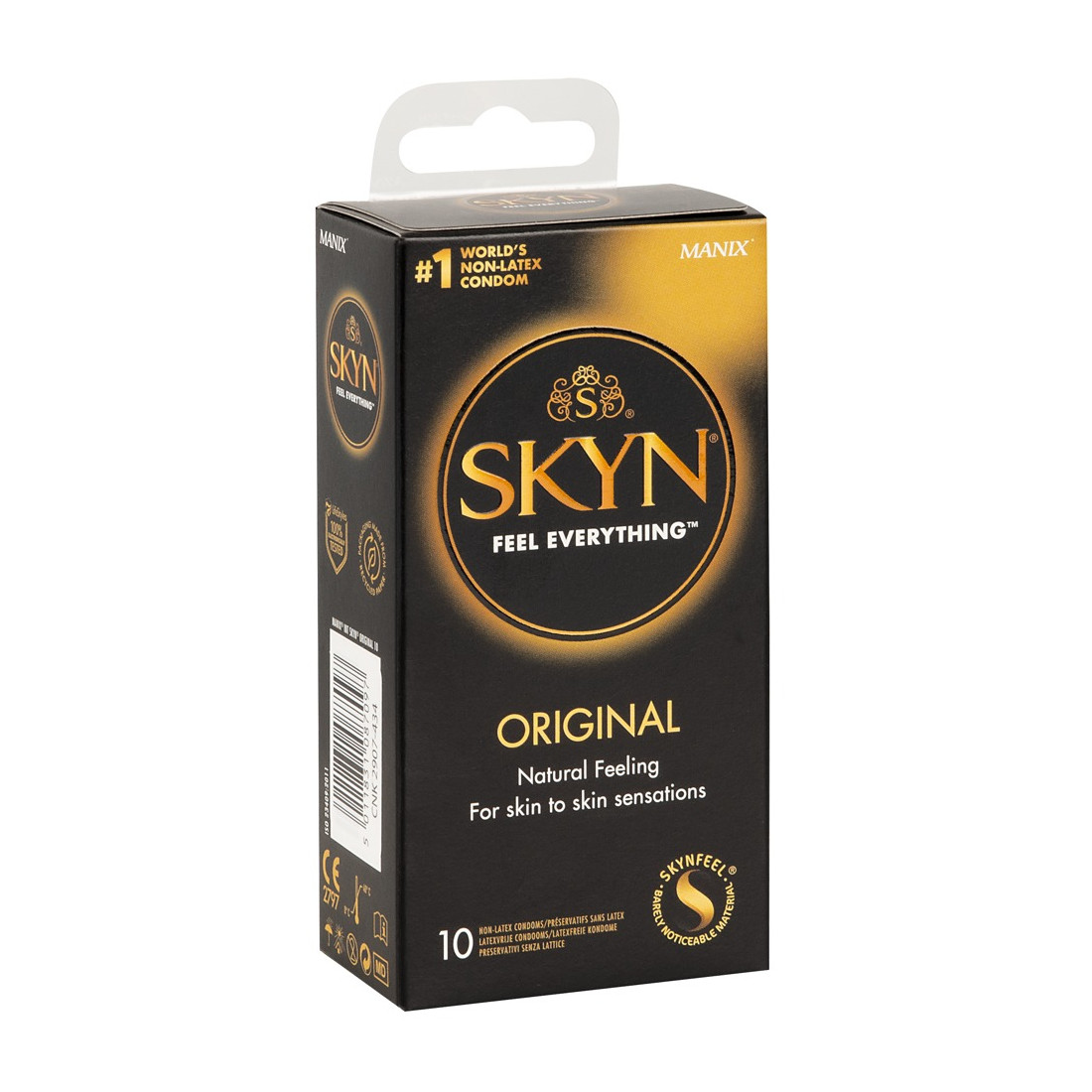 SKYN Original Latexfri Kondomer er et ultratyndt og latexfrit kondom, som er perfekt til folk med latexoverfølsomhed og -allergi. Kondomet er lavet af et teknologisk, avanceret materiale, der har vist sig at forbedre stimulering. Det føles blødt og behageligt mod huden og er produceret med et langtidsholdbart og ultraglat smøremiddel, så det er nemt for dig – eller din partner – at tage på.