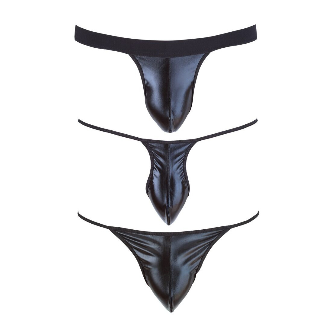 Alle tre par underbukser til mænd er fremstillet i et frækt wetlook-materiale. Materialet er skinnende og får virkelig din manddom til at tage sig godt ud. Den stramme pasform er med til at fremhæve dine fordele på bedste vis, så vil du gøre dig selv særligt indbydende, er disse underbukser et godt valg.