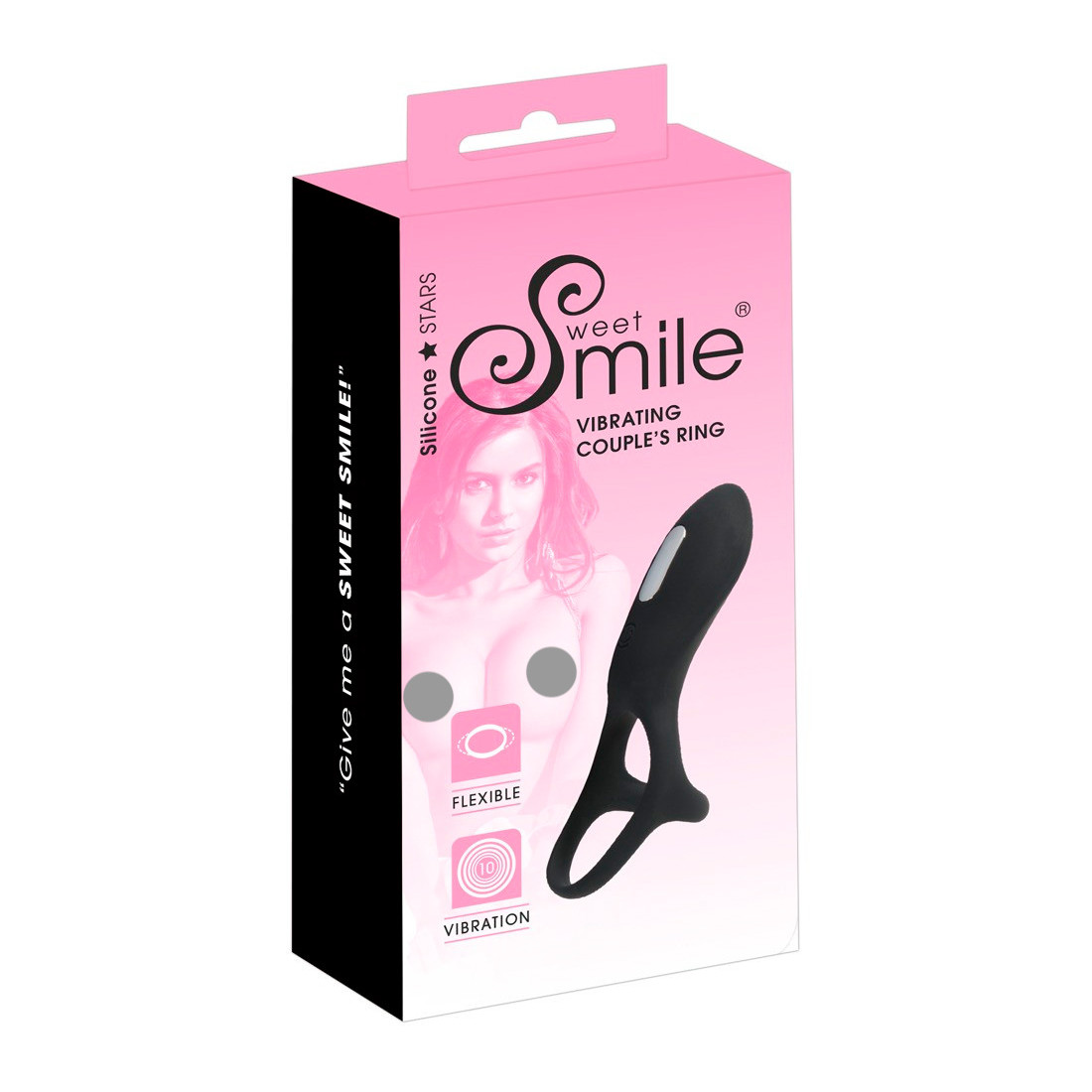 Sweet Smile Par Klitoris og Penis Vibrator fungerer som en kombineret penis og testikelring, der sørger for at legetøjet sidder sikkert fast, når I går til den i soveværelset.