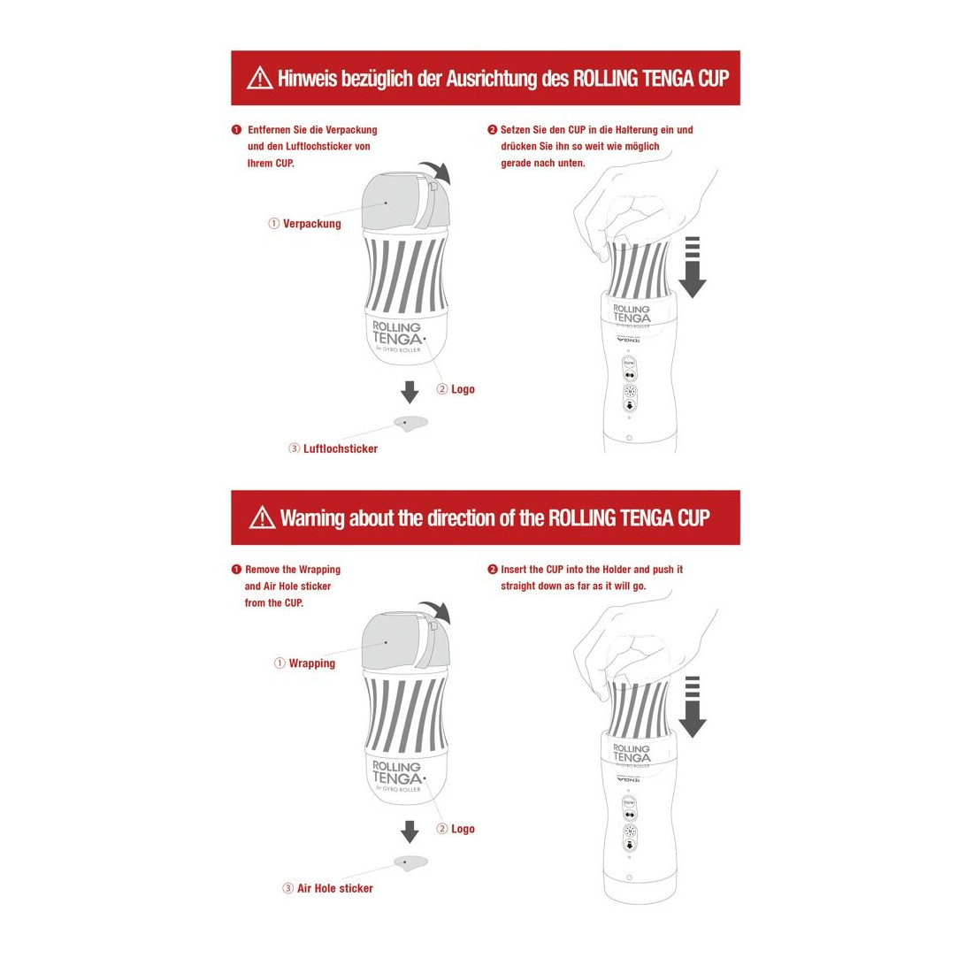 Før du begynder selvforkælelsen, skal du fjerne mærkaten fra vakuumåbningen. Fjern da låget fra din masturbator, og før dit erigerede lem ind i åbningen. Åbning er blød og ganske imødekommende, og du behøver slet ikke at bekymre dig om smørelse. Tenga Rolling Cup har indbygget glidecreme, som sørger for en glat penetration. Du kan nemt styre, hvor kraftig masturbatorens sugeeffekt skal være ved at skiftevis at åbne og lukke lufthullet med fingeren. Når Rolling Cup har bragt dig eksplosivt i mål, bør du smide onani sleevet væk. Dog kan du, hvis du benytter kondom, bruge det flere gange.