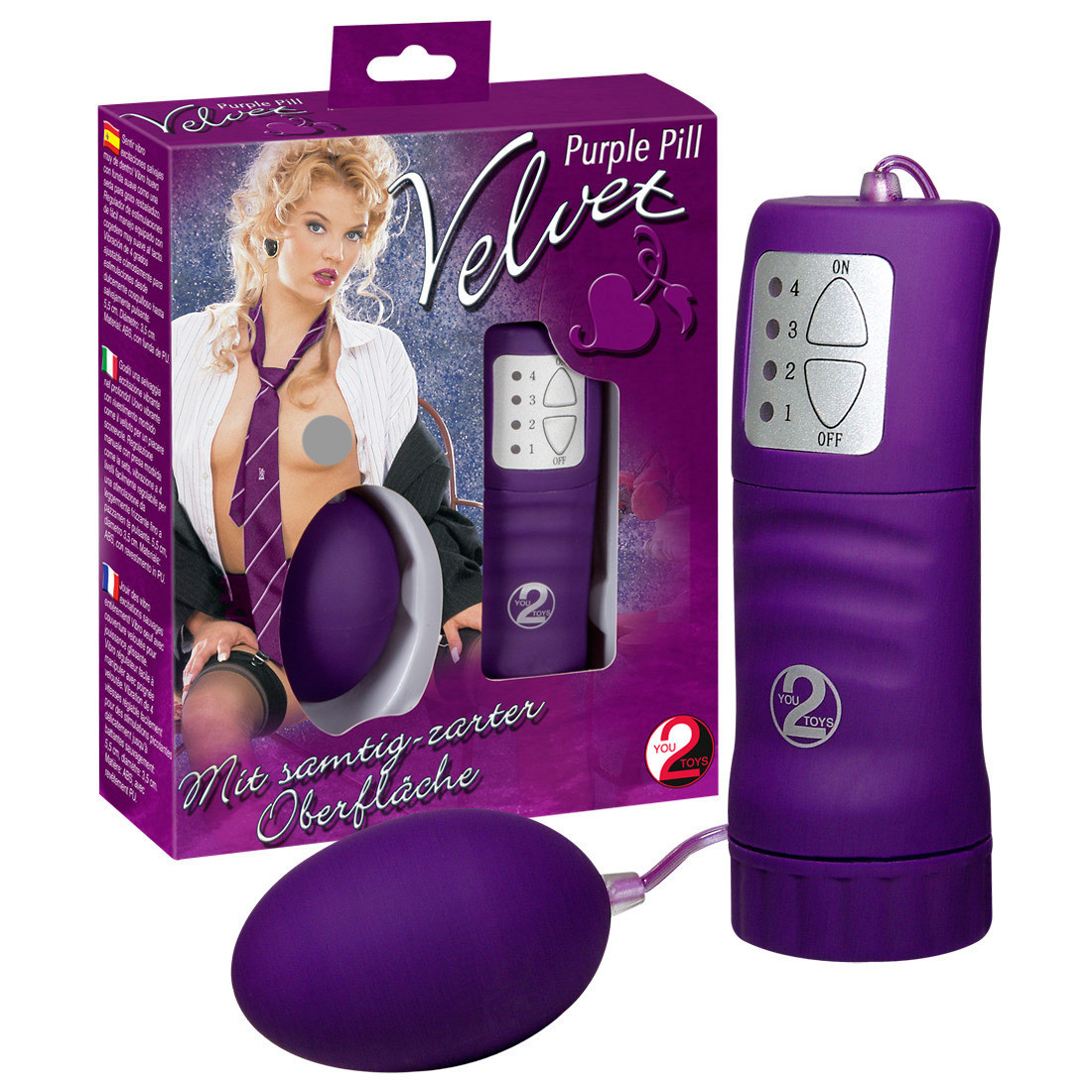 Med en fiks lille fjernbetjent vibrator som Purple Pill behøver du ingen andre stimulanser. Du må ikke lade dig narre af det lilla vibrator ægs begrænsede størrelse, for det er kraftigt nok til at kunne mætte enhver erotisk sult. Ægget vibrerer i fire forskellige frekvenser. Start med det første niveau; en behagelig kildren, som får dig til at længes efter mere. Herefter følger tre yderligere vibrationstrin, og du ender med en intens, erotisk knurren, som uundgåeligt fører til kraftige orgasmer.