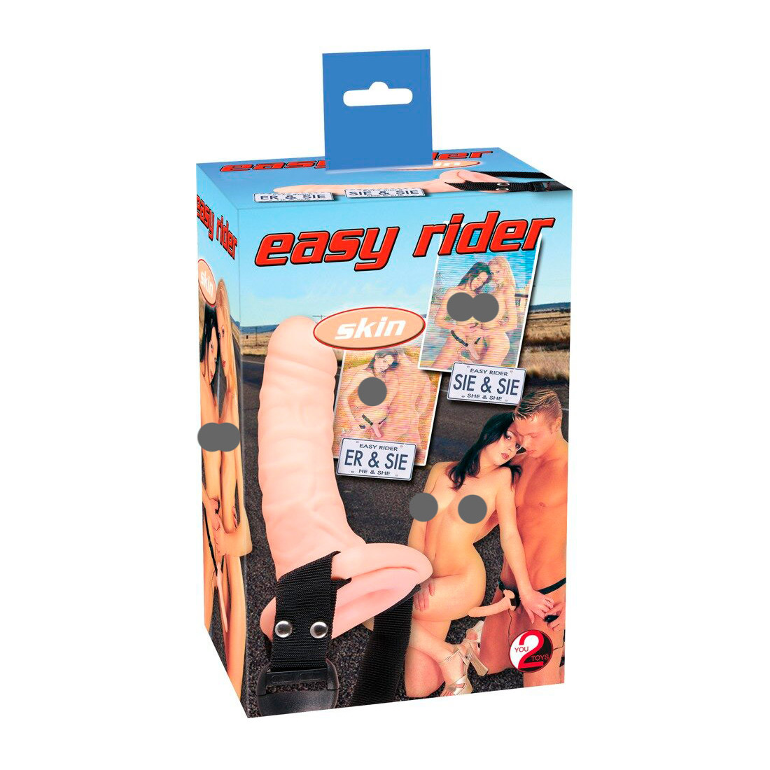 Strapon sex med en påspændingsdildo gør parsex meget mere spændende. En strapon vibrator er som en slags frækt kamuflageudstyr til hans lem, som dermed vil føles fremmed og anderledes svulmende på vej ind. Når han så har begravet sig i dig, kan du eller han beordre vibrationerne sat i gang med den fingernemme fjernbetjening. Vibrationerne er trinløse og slet ikke til at stå for. En strapon vibrator er også hendes chance for at forsøge sig med pegging. Man behøver nemlig ikke at have et lem i forvejen for at kunne betjene Easy Rider. Med den brunstige dildo spændt for kan hun tage ham bagfra, så længe hun husker en god håndfuld anal glidecreme.
