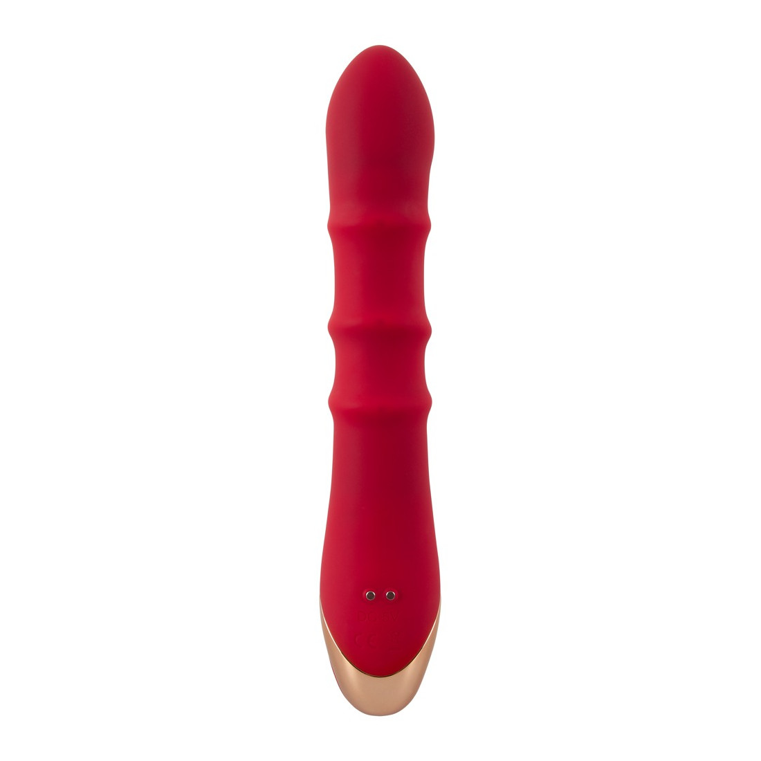 Yderst på vibratorens svulmende spids sidder en kraftfuld motor med hele 10 forskellige rytmer og hastigheder, som sender bølgende vibrationer dybt ind i din vagina. Og mens du har et fast greb om skaftet, der er formet til at passe din hånd, mærker du de tre bevægelige ringe på midten af vibratorens skaft. Kugleringene bevæger dig rytmisk og diametralt af hinanden, så ikke en centimeter af dit indre står uberørt hen.