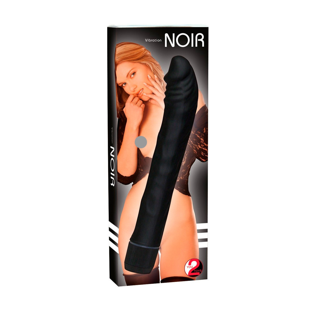 Slank, sort dildo vibrator med let året struktur og penishoved.