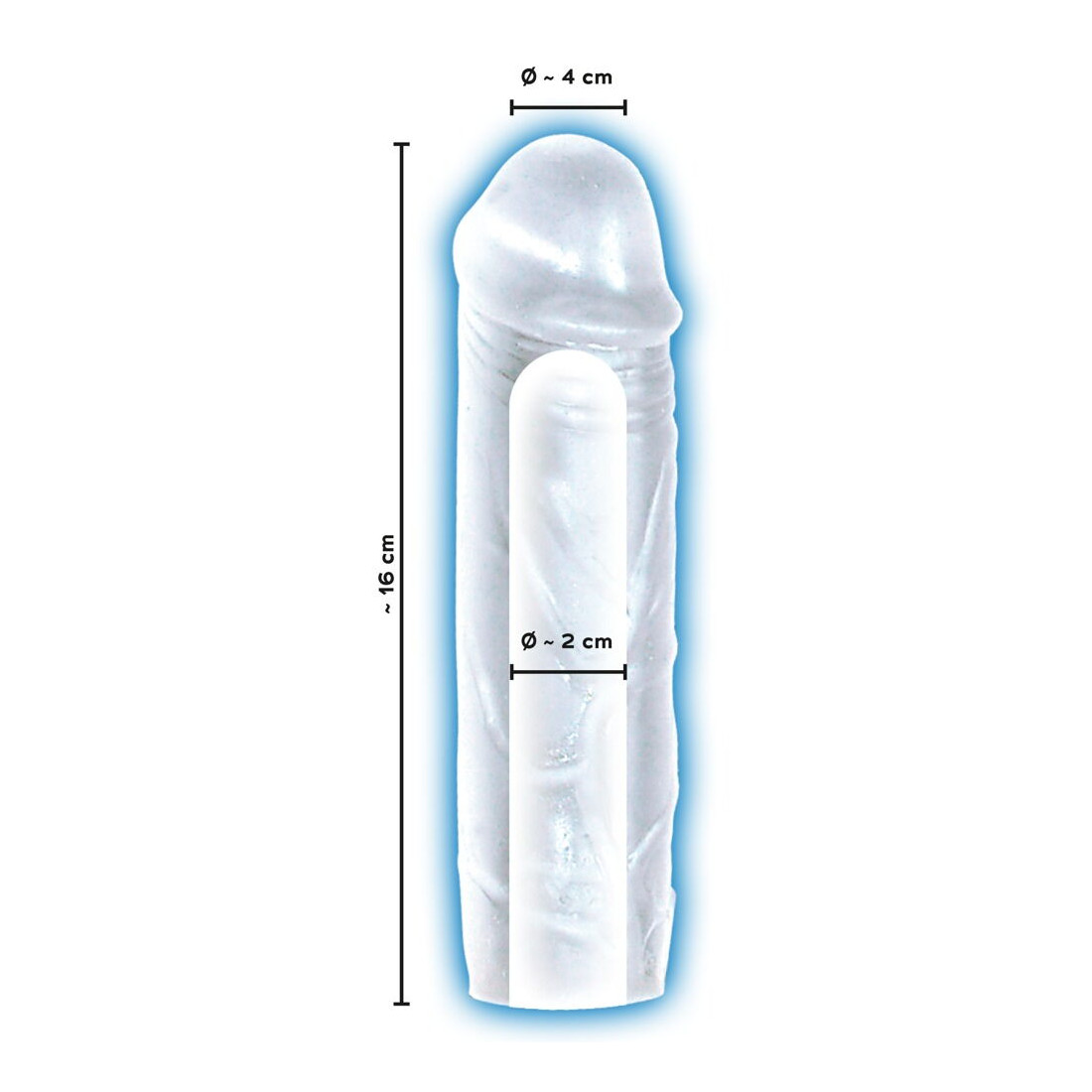 Giv dig selv lov til at prøve, hvordan det er at have en lidt længere og lidt tykkere penis med dette fleksible og lækre penis-sleeve. Sleevet er nemt at tage på, for i det sekund, du har erektion, er du klar til at bruge det. For maksimal komfort kan du bruge lidt glidecreme, når du sætter sleevet ned over din penis.