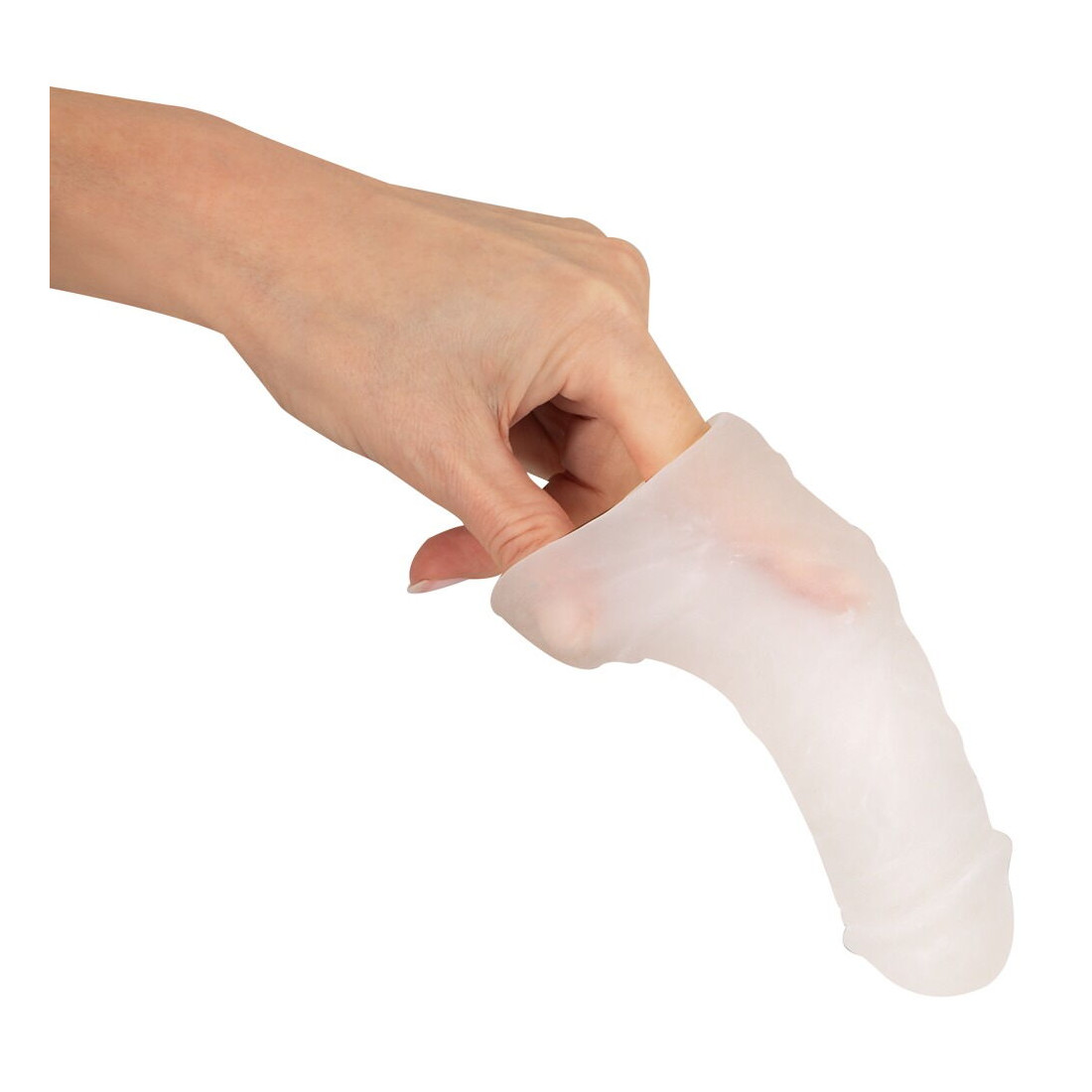Dette penis-sleeve er perfekt for nybegyndere. Sleevet giver nemlig en 1 cm tykkere og 1-1,5 cm længere penis. Det gennemsigtige look gør, at både du og din partner kan se din penis hele tiden. Sleevet kan bruges både vaginalt og analt, og materialet er så blødt, at det nærmest føles som rigtig hud. Den fleksible munding gør, at sleevet sidder godt og stramt om din penis.