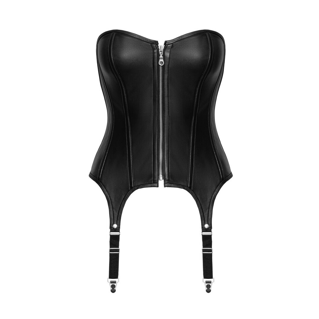Elsker du at omslutte din krop med stramt, tykt læder af høj kvalitet. Kan den frække, knitrende lyd fra materialet, når du bevæger dig, få dig helt i stødet? Så skal denne lædercorsage med indbyggede strømpeholdere helt klart hjem i din skuffe! Her får du nemlig en corsage med så mange spændende detaljer, at du kan gøre den til noget af det frækkeste, du og din date længe har set. Og så trækker det bestemt ikke fra, at læderet er så flot og lækkert.