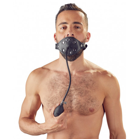Denne læder knebel består af en lang bæltelignende læderrem med huller og metalspænde. På den måde kan du justere størrelsen, så den sidder godt og stramt om din partners hoved. BDSM sex kræver naturligvis en gagball eller noget endnu sjovere – som eksempelvis den penis gag, der er fastgjort til mundstykket. Den tykke latex penis er tilmed oppustelig, og du fylder den med luft ved hjælp af den medfølgende håndpumpe. Med munden fuld af udspændt latex må din partner tage straf såvel som belønning i fuldstændig stilhed.