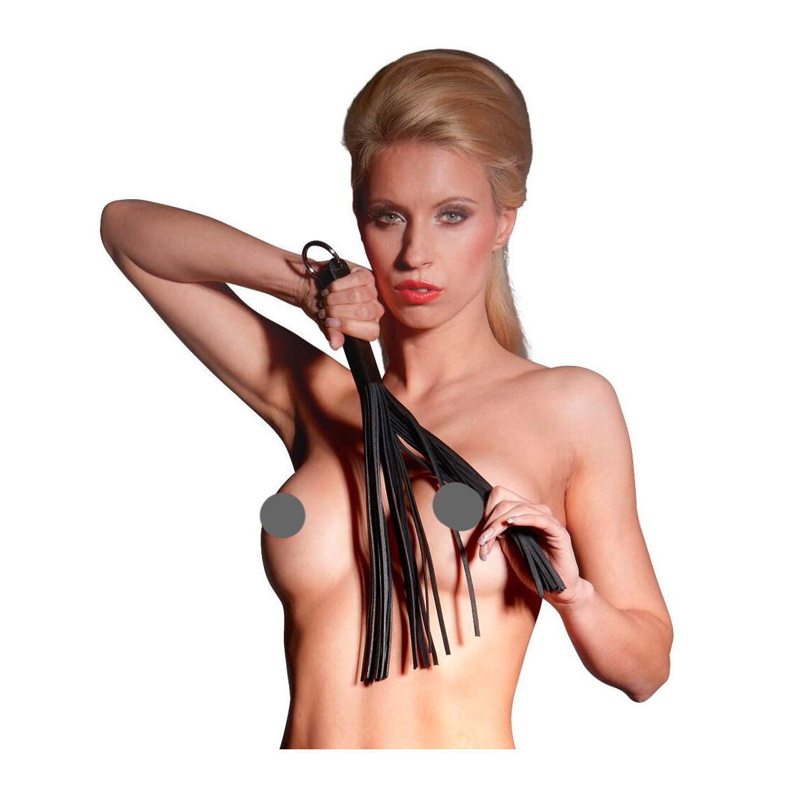Zado Læder Pisk 45 cm er lavet af ægte kolæder i sort. Håndtaget er omviklet med læder og ligger godt i hånden, så du er sikret et godt greb. Halen består af flere lange læderstrimler, som både kan give hårde smæk og blide kærtegn. For enden af håndtaget sidder der en ring til vægophæng.